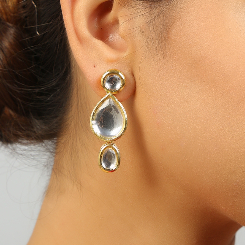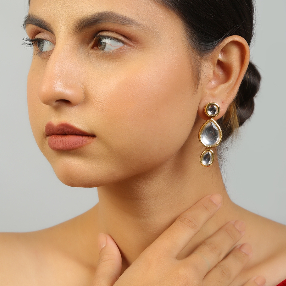 The vertical drop arrangement of kundan stones creates a refined look that is elegant yet versatile.