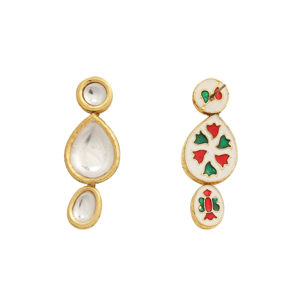 Add a touch of refined tradition to your jewelry collection with these Handcrafted Kundan Drop Stud Earrings, designed to bring understated elegance to festive and ethnic styling. Featuring vertically aligned kundan stones in a graceful drop silhouette, these earrings reflect classic Indian craftsmanship while remaining lightweight and comfortable for extended wear. Packed & quality-checked by Indianshelf.