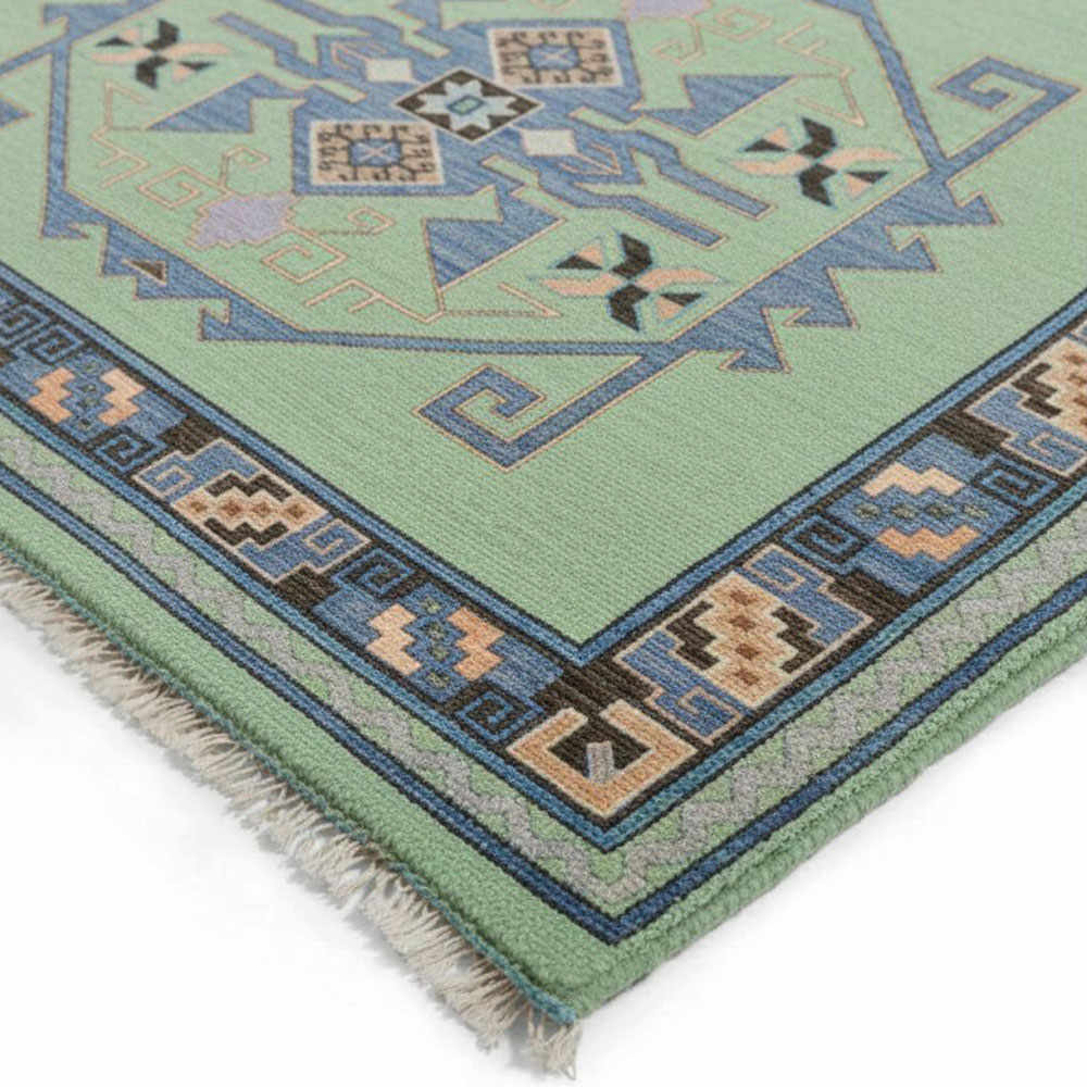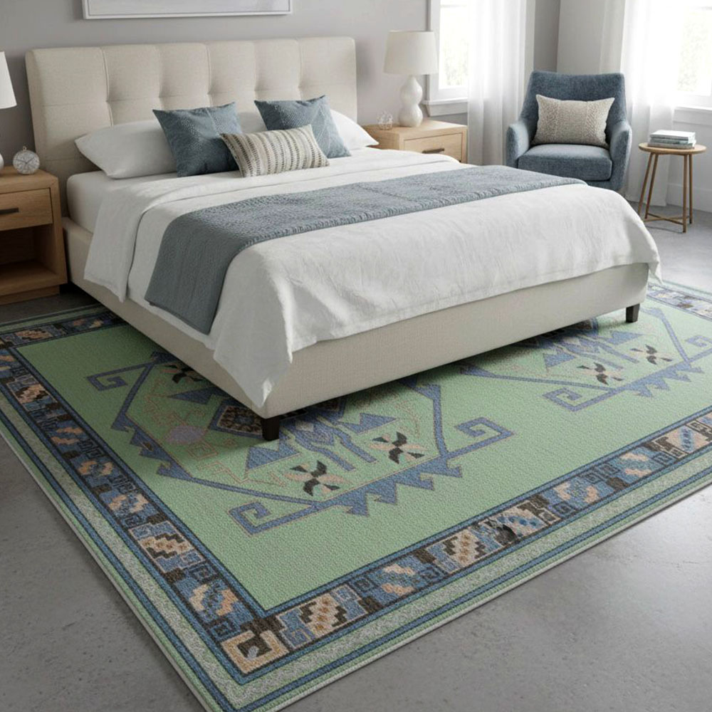 Vacuum gently and rotate the rug periodically to distribute wear evenly. Avoid direct sunlight and moisture, and have the rug professionally cleaned every two years to remove dirt and maintain its appearance.
