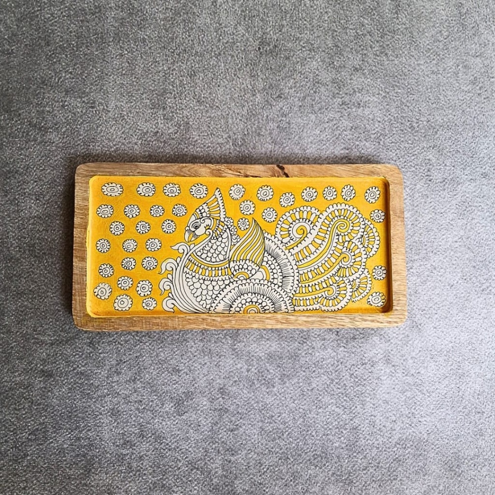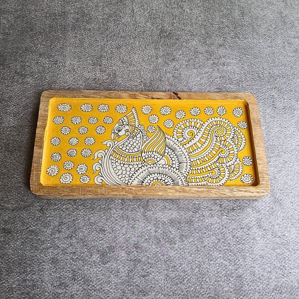 The intricate hand painted motif adds a vibrant and decorative touch, making the tray both functional and visually appealing.