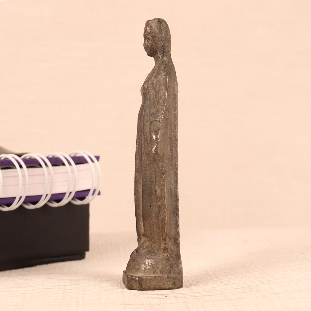 Buy a metal statue of Mother Mary online from our website and get a hassle free delivery at your doorstep. Crafted with unparalleled precision by skilled craftsmen, this timeless masterpiece showcases the essence of English Art. Standing in graceful repose, the statue of Mother Mary exudes a sense of serenity and grace that is truly captivating. Its antique gray finish lends an air of antiquity, making it a striking addition to any setting. Meticulously handcrafted from high-quality metal, this statue is a testament to the artisan's dedication to perfection. Whether you choose to place it in your home, office, restaurant, hotel, cafe, or shop, this statue will infuse an aura of tranquillity and elegance into the space. Collectors of vintage treasures will find it a prized addition to their collection, and it makes for a thoughtful gift on special, festive, or auspicious occasions.