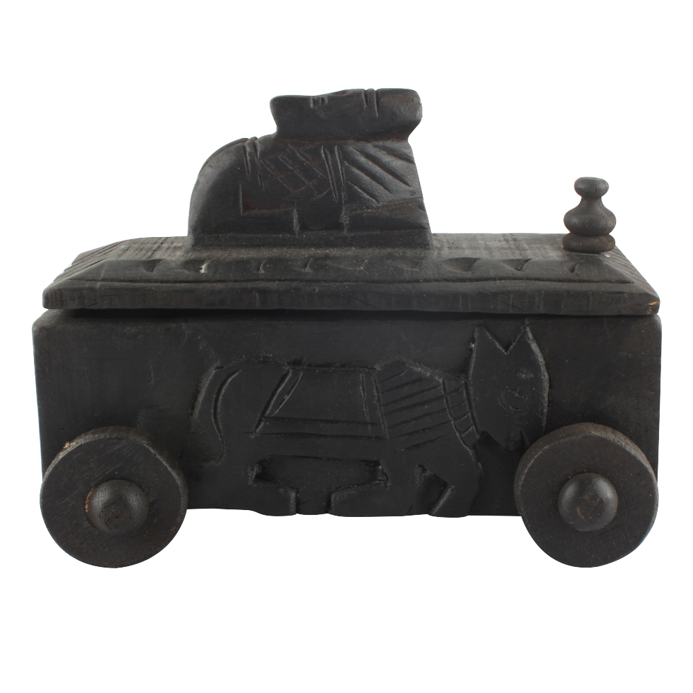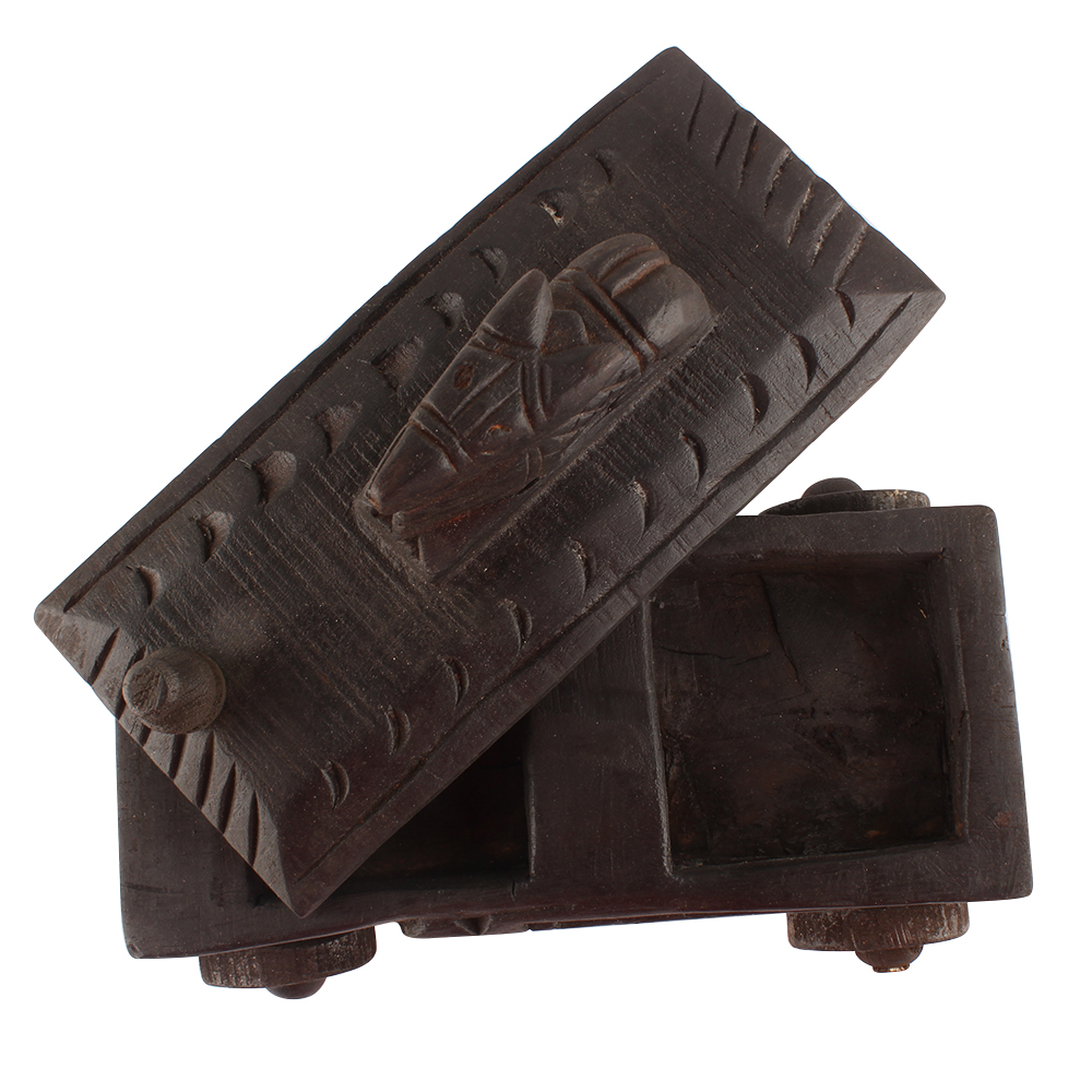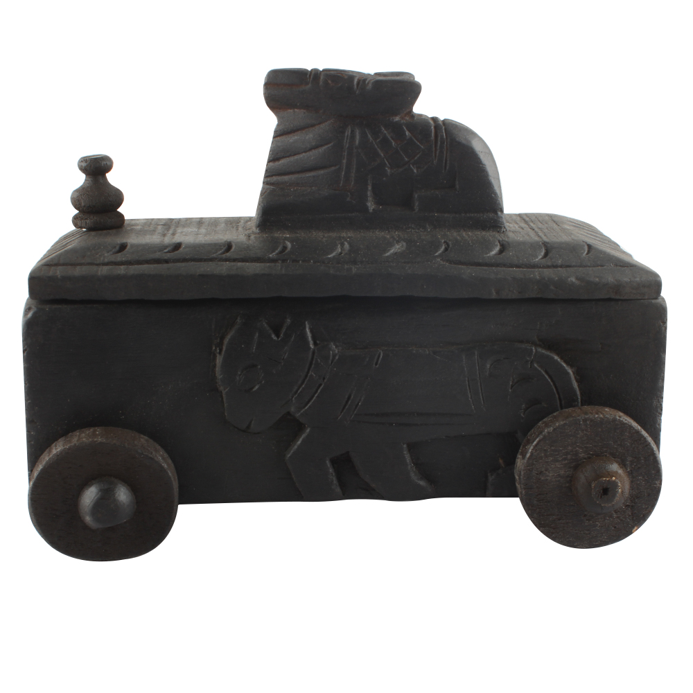 Handcrafted Old Nandi Wooden Box For Storage. Ceramic Drawers in Wooden Frame. The Spice Boxes are designed with different patterns. These boxes are made using natural wood which does not harm the purity of spices.