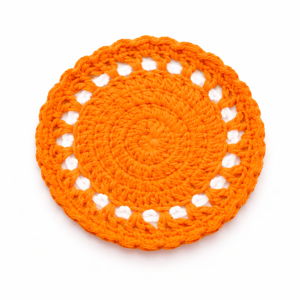 This handcrafted orange crochet doily coaster is made using durable cotton yarn and designed with a detailed round crochet pattern. The bright orange color adds warmth and character to dining tables, coffee tables, and tea setups while highlighting traditional crochet craftsmanship. Functional and decorative, this cotton yarn coaster helps protect surfaces from heat, moisture, and cup marks. Product Highlights Handcrafted crochet coaster made from cotton yarn Decorative round crochet doily pattern Bright orange color for vibrant table styling Protects table surfaces from heat and stains Lightweight handmade decorative table accessory Material Details Material: Cotton yarn Technique: Hand crocheted Shape: Round Texture: Soft crochet lace pattern Finish: Lightweight handcrafted weave Usage Ideas Coffee mug and tea cup coaster Decorative doily for trays and centerpieces Accent mat for dining or coffee tables Handmade dcor element for kitchens and living spaces Care Instructions Hand wash gently with mild detergent and allow it to air dry to maintain the crochet structure and cotton yarn quality. FAQs What material is used in this crochet coaster? This coaster is handcrafted using high-quality cotton yarn. Can this crochet doily be used under hot cups? Yes, it can be used as a coaster for tea cups, coffee mugs, and glasses while protecting table surfaces. Are all pieces identical? No. Because each item is handmade, slight variations may occur in the crochet pattern.