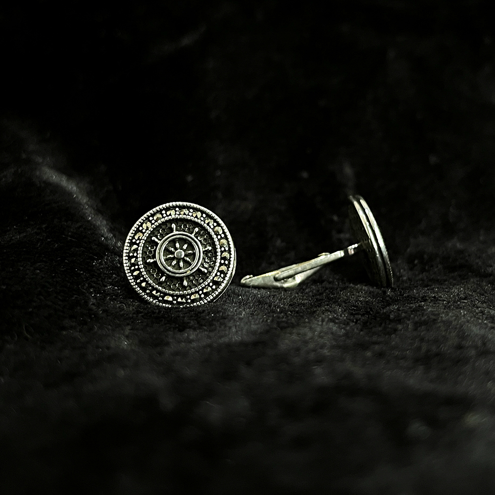 The package includes the displayed cufflinks an elegant silver sutra box an authenticity certificate and a storage pouch.
