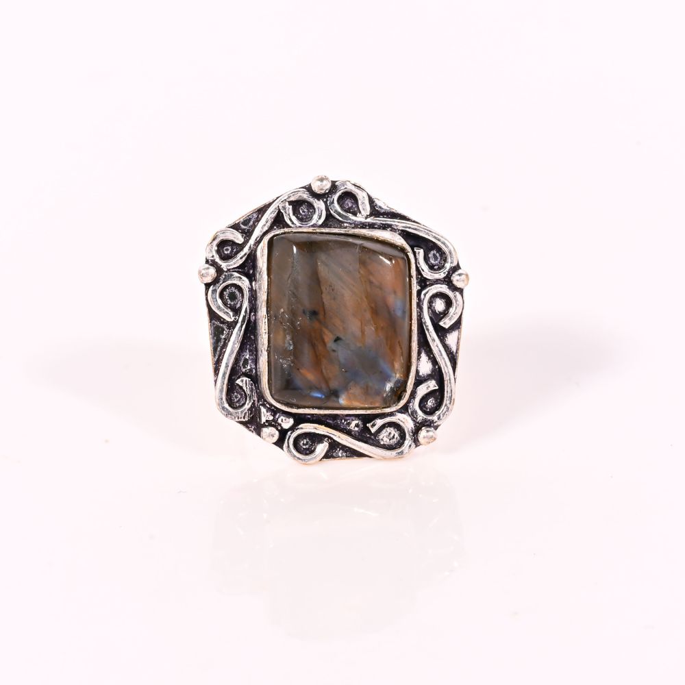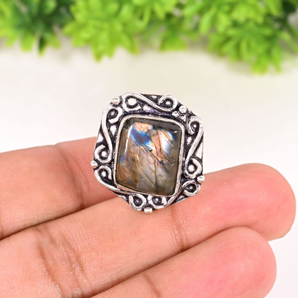 The Handcrafted Oxidized Ring with Labradorite Gemstone for Women is a refined blend of earthy elegance and artisan craftsmanship. Crafted in brass with a vintage oxidized finish, this ring features a luminous labradorite gemstone admired for its shifting flashes of blue, grey, and soft iridescence. Compact yet expressive, it offers a statement look without feeling heavy. Designed for women who appreciate depth, symbolism, and timeless style, this ring feels grounded and graceful.