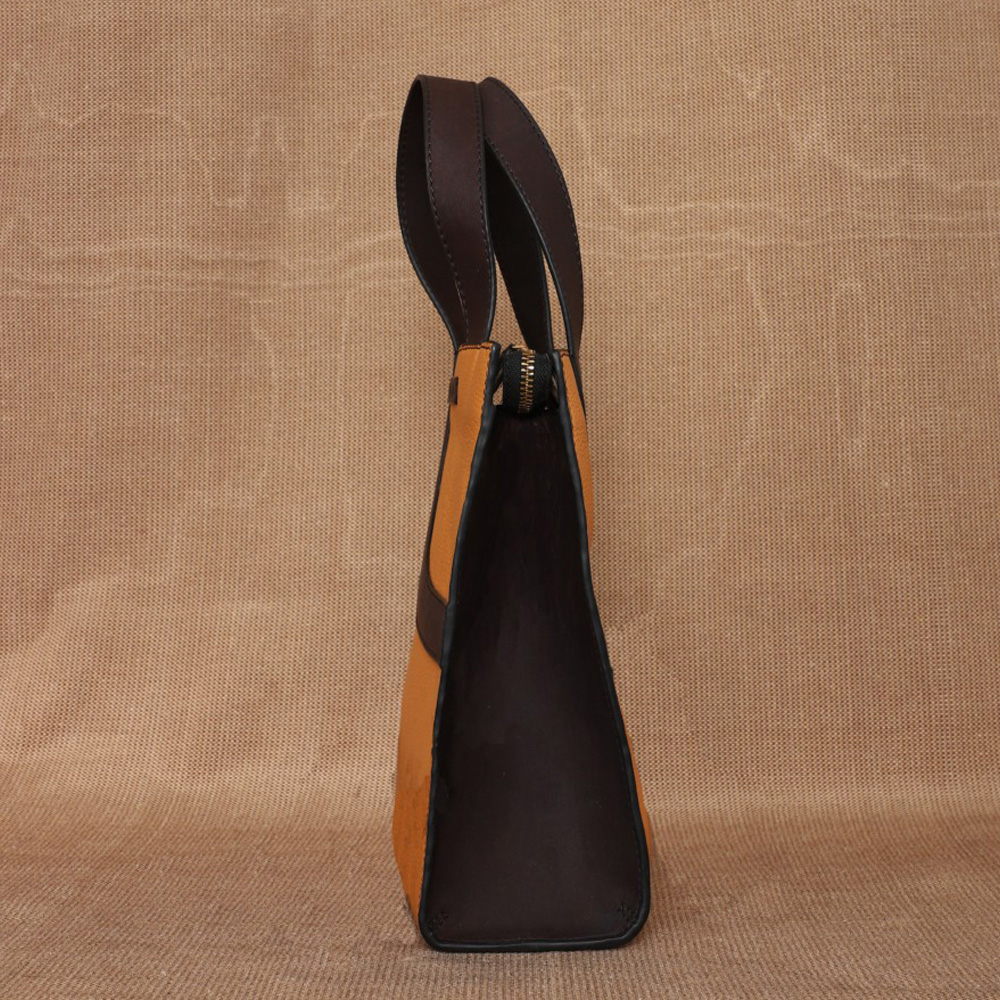 Crafted in lovely Peach and Dark Chocolate leather, this handbag has a zipper closure and offers ample space for all your essentials, including a small wallet, mobile phone, keys, currency, and a bit of make-up. The thoughtfully designed interior features a secure zipper pocket for your valuables, a handy hanging key holder, 2 utility pockets for quick access to items.