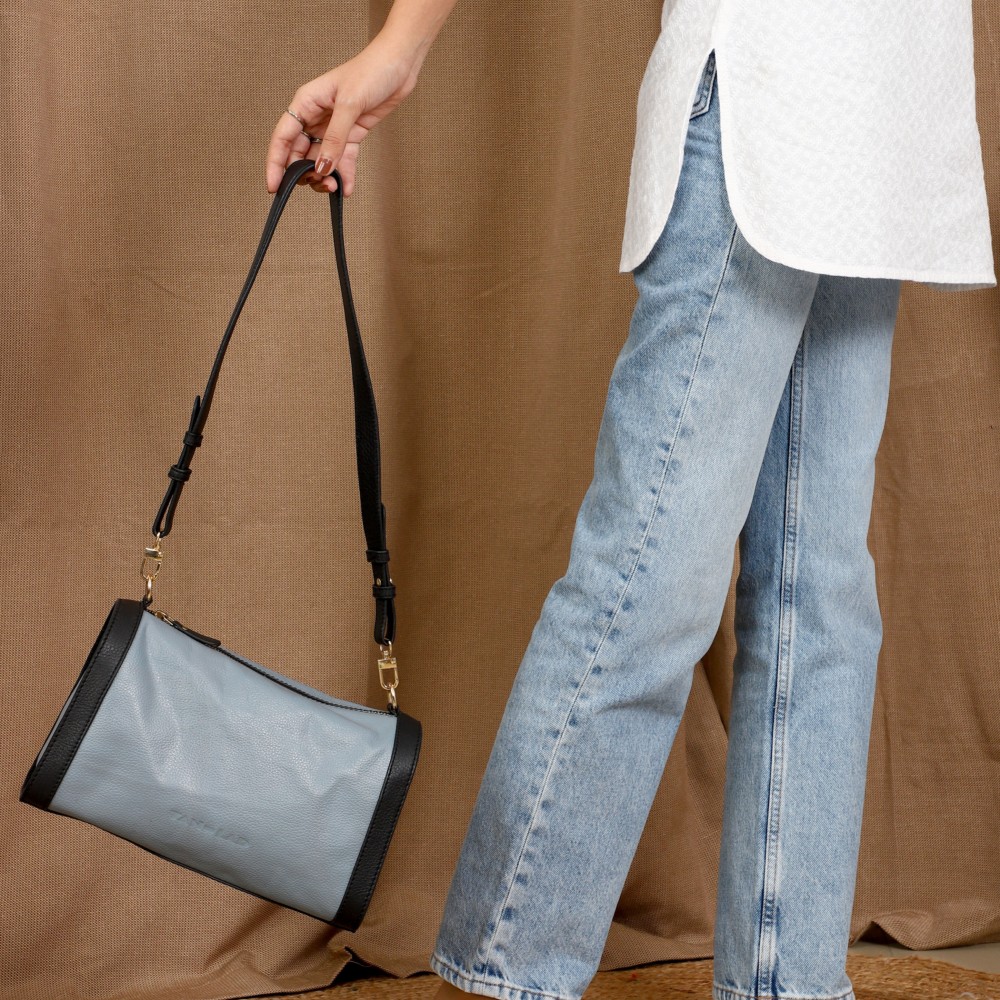 Crafted with lovely Pigeon and Charcoal leather, this bag features a zipper closure, ensuring the safety of your essentials while still offering easy access. The spacious main compartment allows for ample storage, perfect for your daily must-haves. Inside, youll find a zipper pocket and an open patch pocket for organized storage of smaller items, making sure everything has its place. For added convenience, Rachel also includes two utility pockets on either side, perfect for those quick-grab items like keys or a phone.