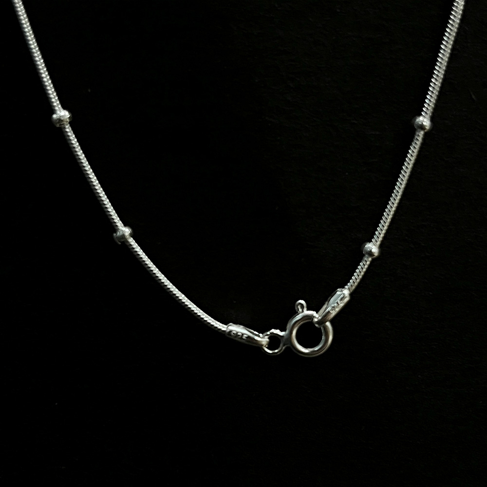 This handcrafted ball chain is created using certified 925 sterling silver and designed for timeless everyday styling. The evenly spaced ball elements add subtle texture while keeping the profile clean and lightweight. Ideal for buyers who prefer classic jewellery with lasting appeal, this chain works well as a standalone piece or layered with pendants. Each chain is carefully assembled for smooth wear and dependable comfort. Packed and quality checked by Indianshelf. Classic Ball Chain Formation The rounded ball detailing creates a refined rhythm along the chain delivering understated elegance suitable for regular use. Uniform ball linked structure with smooth finish Entirely handmade no machines used Lightweight build designed for comfortable extended wear Material And Build Information Material 925 Sterling Silver Plated Origin India safely packed and quality checked by Indianshelf Wearing And Styling Options Suitable for everyday personal jewellery wear Complements minimalist and classic styling preferences Works well within boutique jewellery collections Relevant for retailers offering versatile chain designs Care Advice For Lasting Finish Store the chain in an airtight pouch when not in use. Avoid contact with perfumes chemicals and lotions. Clean gently using a soft microfiber cloth. Remove before swimming or bathing to preserve surface quality. Customer Information Section Is this chain suitable for daily wear Yes the lightweight ball chain design supports regular wear with basic care. Can this chain be paired with pendants The structure allows pairing with compatible pendant styles. Does the package include certification An authenticity certificate is included inside the box. Is this chain machine manufactured No the chain is handcrafted by skilled artisans. Artisan Made Trust Statement Every piece reflects heritage artistry and careful attention to detail. All our products are handmade never machine made ensuring individuality.