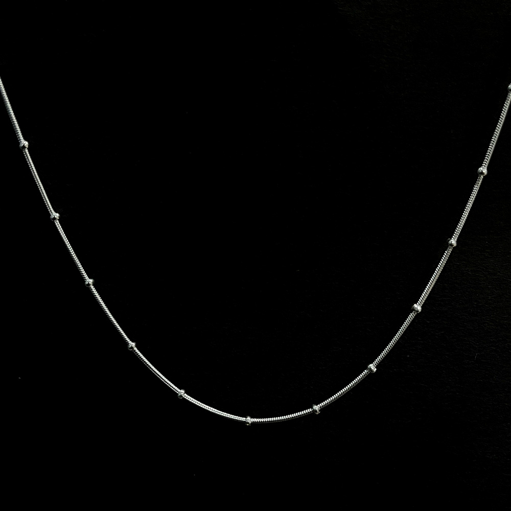 This handcrafted ball chain is created using certified 925 sterling silver and designed for timeless everyday styling. The evenly spaced ball elements add subtle texture while keeping the profile clean and lightweight. Ideal for buyers who prefer classic jewellery with lasting appeal, this chain works well as a standalone piece or layered with pendants. Each chain is carefully assembled for smooth wear and dependable comfort. Packed and quality checked by Indianshelf. Classic Ball Chain Formation The rounded ball detailing creates a refined rhythm along the chain delivering understated elegance suitable for regular use. Uniform ball linked structure with smooth finish Entirely handmade no machines used Lightweight build designed for comfortable extended wear Material And Build Information Material 925 Sterling Silver Origin India safely packed and quality checked by Indianshelf Wearing And Styling Options Suitable for everyday personal jewellery wear Complements minimalist and classic styling preferences Works well within boutique jewellery collections Relevant for retailers offering versatile chain designs Care Advice For Lasting Finish Store the chain in an airtight pouch when not in use. Avoid contact with perfumes chemicals and lotions. Clean gently using a soft microfiber cloth. Remove before swimming or bathing to preserve surface quality. Customer Information Section Is this chain suitable for daily wear Yes the lightweight ball chain design supports regular wear with basic care. Can this chain be paired with pendants The structure allows pairing with compatible pendant styles. Does the package include certification An authenticity certificate is included inside the box. Is this chain machine manufactured No the chain is handcrafted by skilled artisans. Artisan Made Trust Statement Every piece reflects heritage artistry and careful attention to detail. All our products are handmade never machine made ensuring individuality.