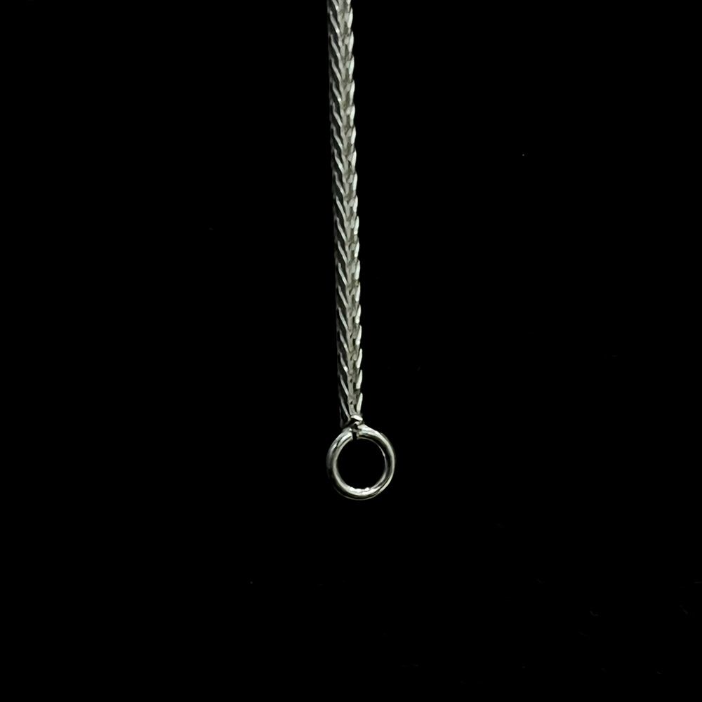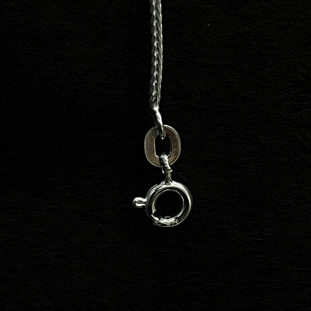 Store the chain in an airtight pouch when not in use. Avoid contact with perfumes chemicals and lotions. Clean gently using a soft microfiber cloth. Remove before swimming or bathing to maintain surface quality.
