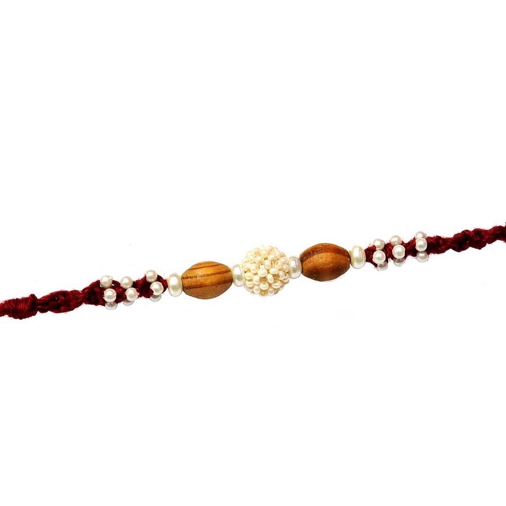 Handcrafted Rakhi with Pearls and Sandalwood Beads