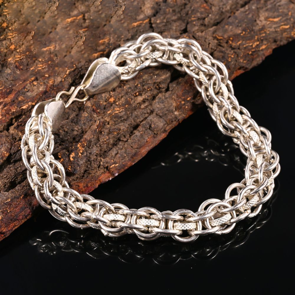 Elevate his style with this handcrafted designer bracelet, made from brass with 925 silver plating. Perfectly sized at 4.5 inches, this bracelet offers a modern and masculine look, ideal for everyday wear or special occasions. A thoughtful gift for boys who love unique, stylish, and handmade jewelry.
