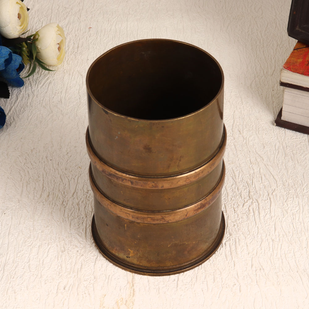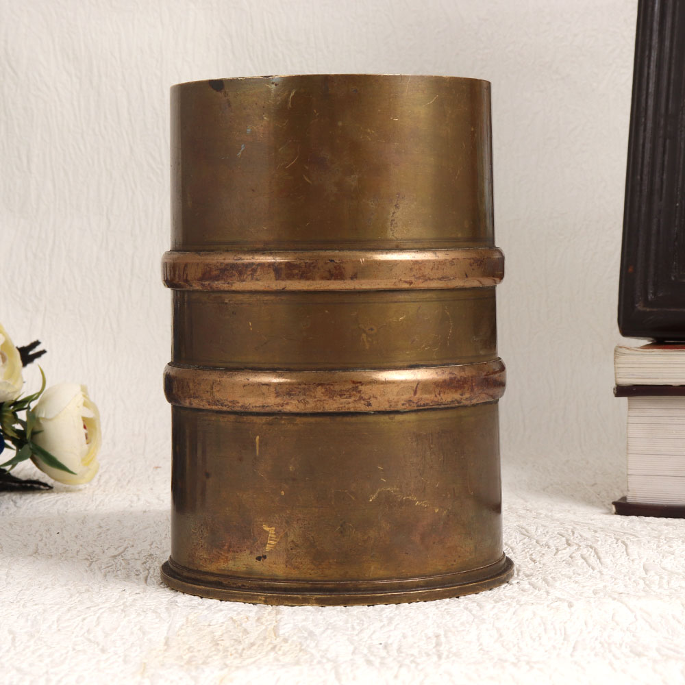 Enhance your interior with a touch of tradition and elegance through this Vintage Brass Holy Water Pot. Crafted in a charming cylindrical shape and finished in an antique brown hue, this piece is a testament to the timeless artistry of professional Indian artisans, particularly drawing inspiration from South Indian craftsmanship. Handmade with utmost precision from high-quality brass, this holy water pot not only serves as a beautiful decorative item but also holds immense cultural significance. Its versatility allows it to grace various settings, including homes, offices, restaurants, hotels, cafes, or shops. This unique piece comes to life during havans, rituals, and auspicious occasions, as it traditionally contains holy water for ceremonial use. Embrace the richness of Indian culture by adding it to your vintage collection or presenting it as a heartfelt gift to your family, friends or relatives on special, festive, or auspicious occasions.