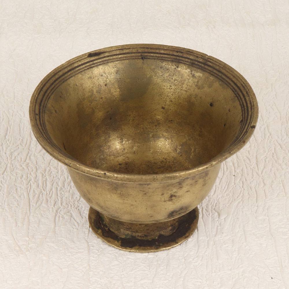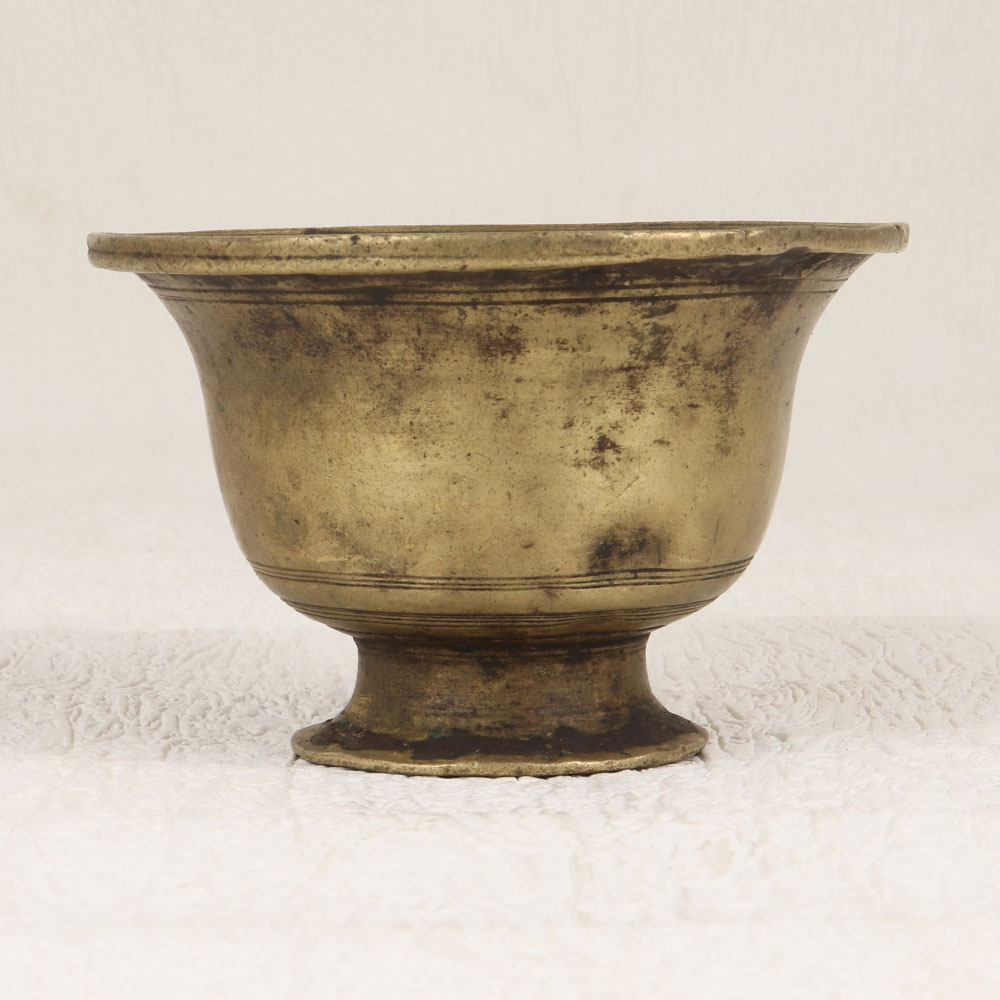 Decorate your prayer room with this Vintage Brass Kumkum Bowl with Base Stand that is meticulously handcrafted by talented Indian artisans in the time-honoured South Indian Art tradition. Fashioned from high-quality brass, the bowl features a rich antique brown finish, lending it an air of timeless elegance. This ornate piece is specifically designed for use during prayers, rituals, and havans, providing a sacred vessel to hold kumkum tilak. Versatile and stylish, this artisanal creation can grace the prayer room of your home, office, restaurant, hotel, or cafe, bringing a touch of cultural charm to any setting. Beyond its religious significance, the bowl serves as a captivating decorative item, seamlessly blending traditional aesthetics with modern spaces. Add this masterpiece to your vintage collection or present it as a thoughtful gift to your family, friends or relatives on special, festive, or auspicious occasions, imparting both beauty and spiritual significance to their lives.
