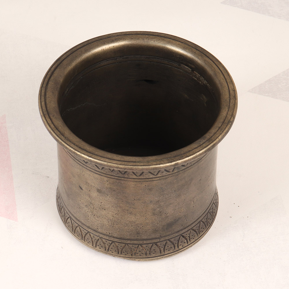 Elevate your culinary and hosting experiences with this exquisite vintage brass panchpatra pot, a true masterpiece from the artisanal heartland of South India. Crafted with meticulous attention to detail, this pot is a testament to the region's rich cultural heritage and unparalleled metalworking expertise. Bring the timeless elegance of South India into your kitchen and dining room with this stunning brass panchpatra pot. Its exceptional quality and captivating design make it a true heirloom piece that will elevate your culinary and hosting experiences for years to come. Whether you're a passionate home chef, an avid entertainer, or someone who appreciates the beauty of traditional craftsmanship, this brass panchpatra pot is a must-have addition to your collection. Invest in a piece of South Indian heritage and let this extraordinary pot become the centerpiece of your kitchen and dining room, inspiring your culinary creativity and delighting your guests.
