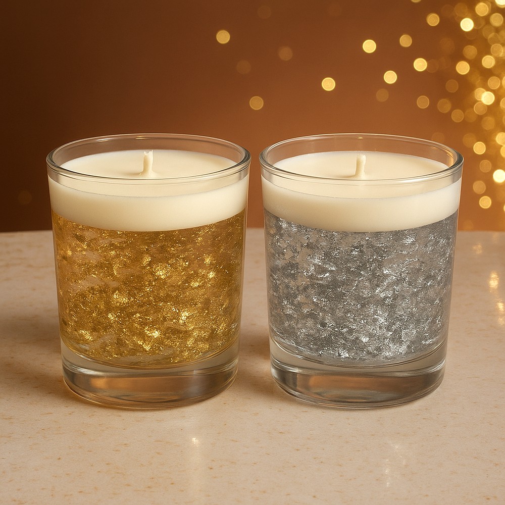 This elegant glow jar candle set is crafted using soy wax and finished in refined gold and silver tones. Designed to create a warm and calm atmosphere, it suits modern interiors as well as gifting needs. Available as a single piece or a coordinated set of two, it balances visual appeal with everyday usability. Packed and quality checked by Indianshelf.