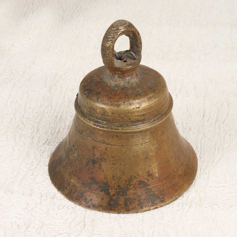 Vintage bell metal construction with loop for hanging