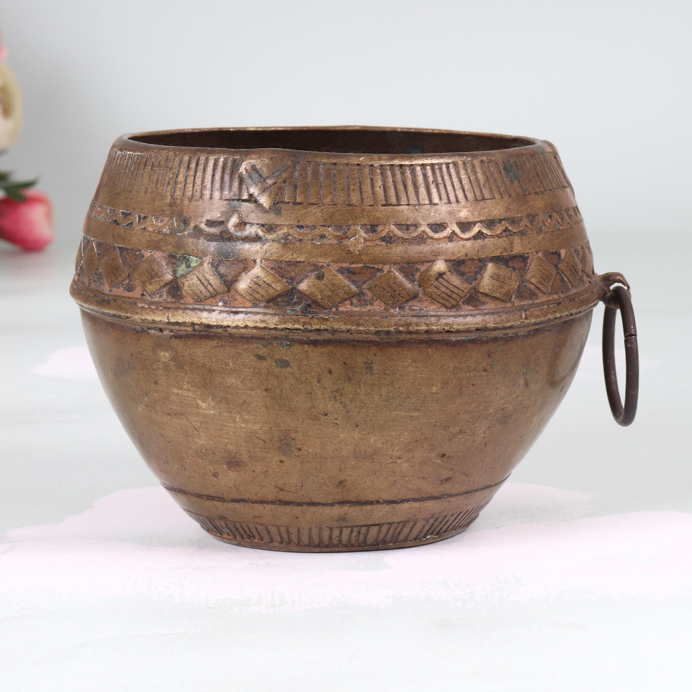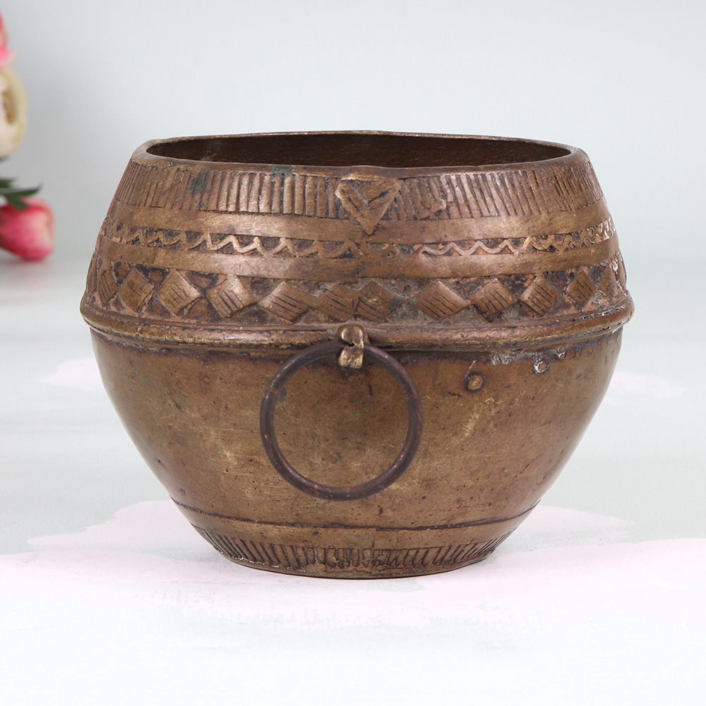 Unlock the secrets of Odisha's artisanal legacy with this stunning vintage brass rice measurement bowl. Crafted with meticulous attention to detail by skilled artisans, this functional and decorative piece is a testament to the rich cultural heritage of this Indian state. Imagine the countless meals and memories this bowl has witnessed over the years, from bustling family kitchens to ceremonial gatherings. Now, you can bring that sense of history and tradition into your own home, using this captivating piece as a centerpiece, a trinket holder, or a reminder of the beauty that lies in the simple things. Whether you're a collector of vintage wares, a lover of Odisha's rich cultural heritage, or simply someone who appreciates the art of mindful living, this vintage brass rice measurement bowl is a must-have addition to your home. Elevate your décor, connect with the past, and enjoy the timeless allure of this truly special piece. Embrace the beauty of the past and the joy of the present with this stunning Odisha Art creation.