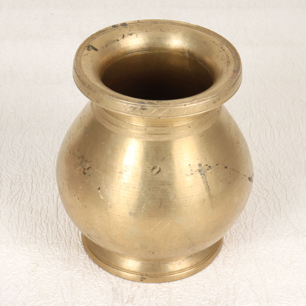Embrace the divine essence with our Vintage Brass Holy Water Pot which is a timeless piece crafted with precision by talented Indian artisans in the revered South Indian Art tradition. This sacred vessel is more than a mere container, it is a symbol of spiritual connectivity and aesthetic elegance. Handcrafted from premium-quality brass, the pot features an exquisite antique brown finish that exudes a sense of antiquity and charm. Its versatile design makes it a perfect addition to prayer rooms in homes, offices, restaurants, hotels, or cafes. During rituals, prayers, or havans, this pot becomes a vessel for holding holy water, enriching your sacred moments with a touch of tradition. Beyond its religious significance, this pot doubles as an indoor flower pot, bringing a touch of nature into your spiritual space. Its unique design makes it a captivating addition to any vintage collection, blending seamlessly with various decor styles. Celebrate special, festive, or auspicious occasions by gifting this Vintage Brass Holy Water Pot to your family, friends or relatives.