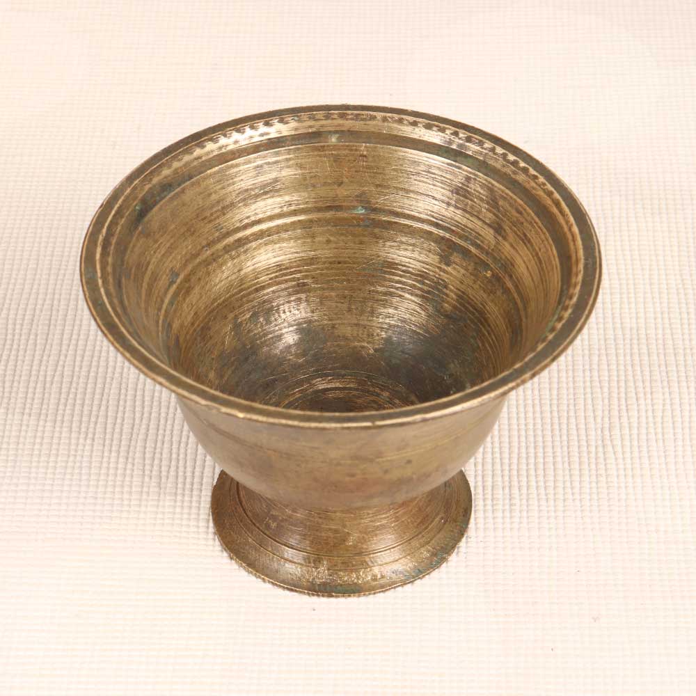 Elevate your sacred space with this handcrafted vintage brass kumkum cup, intricately engraved and patinated for timeless spirit and beauty. Our brass kumkum cup provides a beautiful vessel for holding vibrant kumkum powder, used to adorn the forehead in rituals and prayers. Its cool, heavy brass feels soothing against the skin, transporting you through the generations who have performed this sacred act. For devotees who thoughtfully curate their worship spaces, this cup makes a meaningful addition. Its craftsmanship and spiritual symbolism add grace and auspicious vibrations, perfect for personal practice or gifting.