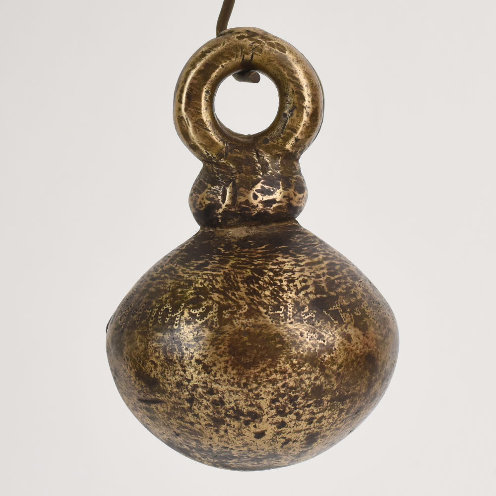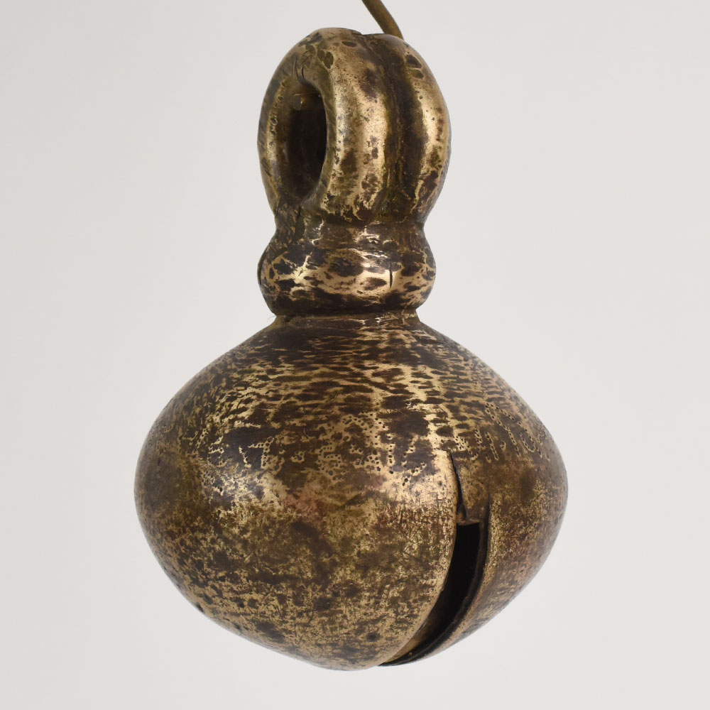 This vintage handcrafted brass livestock bell is a timeless artifact shaped from traditional bell metal and finished with rustic detailing. Skilled artisans crafted this bell to help farmers identify animals across wide pastures, giving it both functional and cultural significance. The handmade design features a dome shape, carved ridges, and an aged patina that enhances its vintage appeal. Whether used as decor or attached to animals, the bell offers a strong, clear tone and durable structure. Ideal for farmhouse interiors, garden decor, craft projects, or antique collections, this handcrafted bell brings character and history to any setting. Its vintage charm and handmade artistry make it a meaningful addition to rustic decor themes. This cow bell is perfect for anyone who values traditional craftsmanship and timeless metalwork.