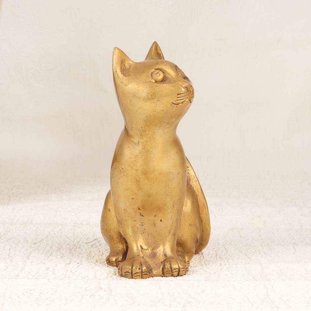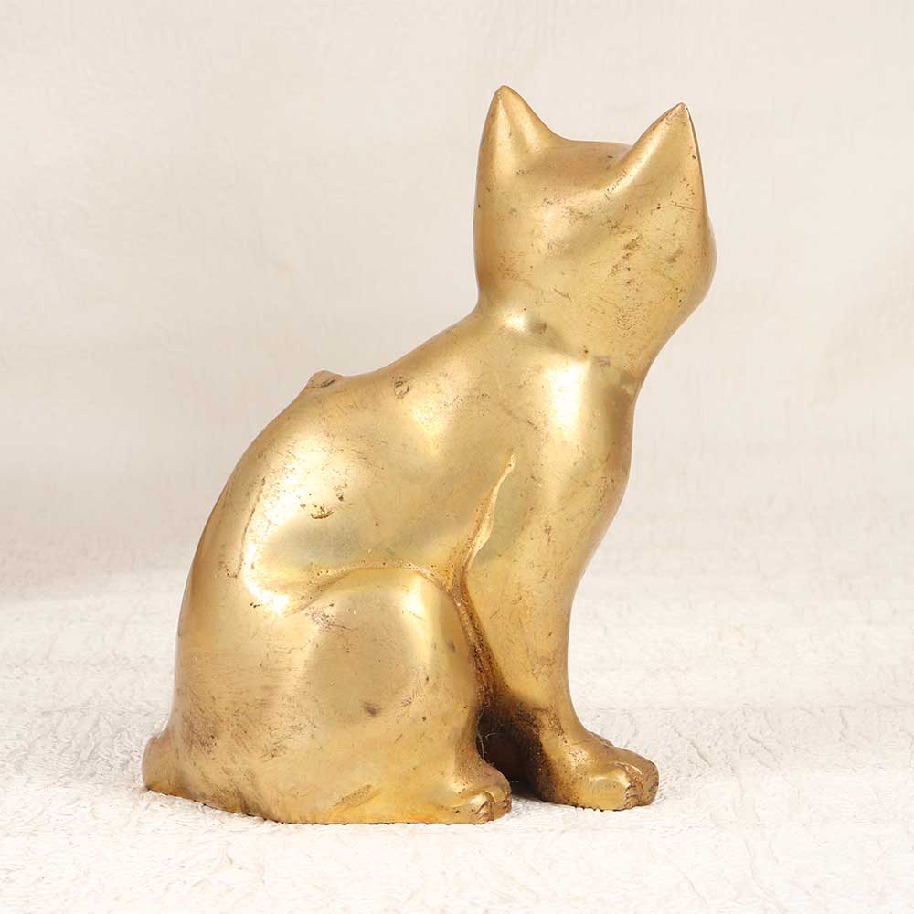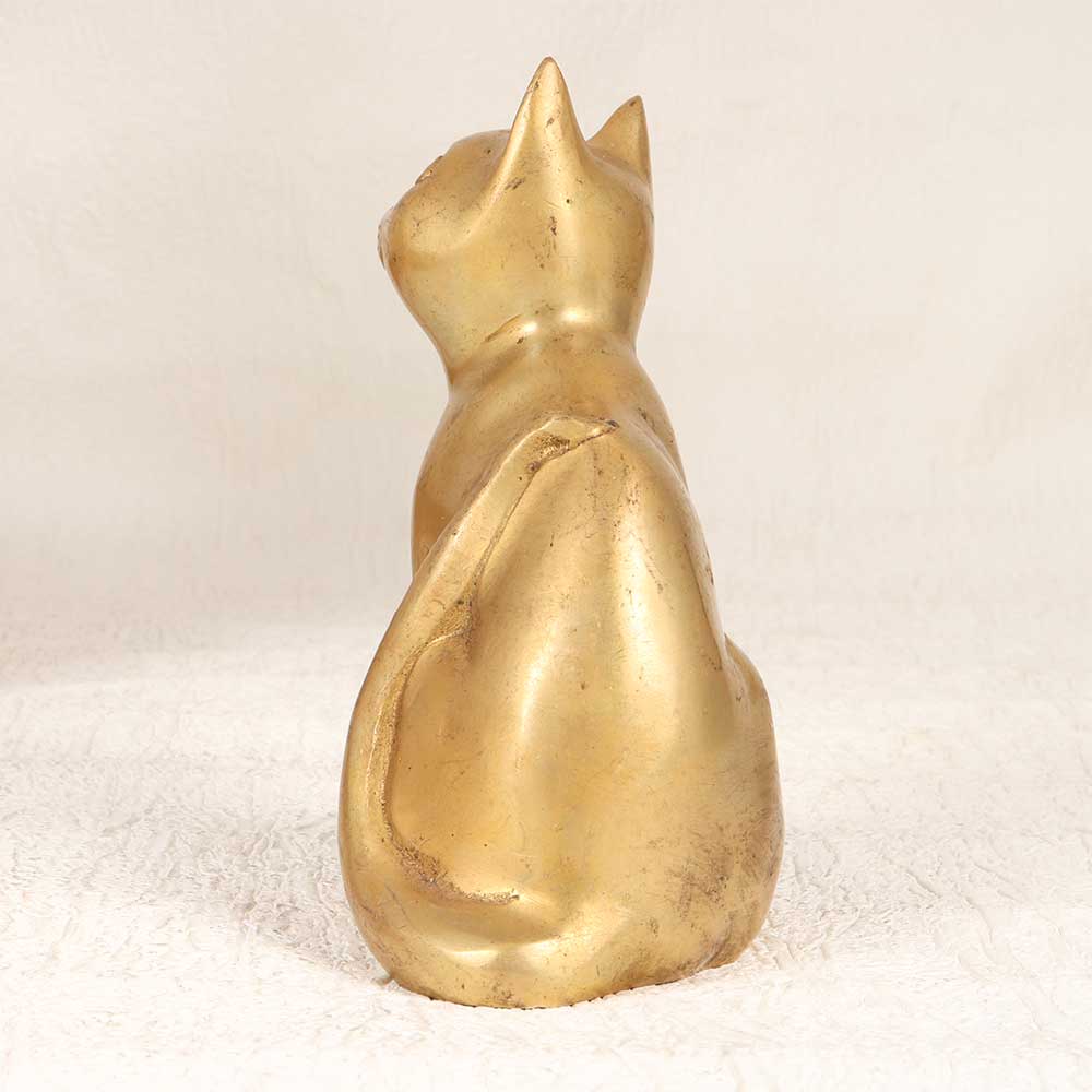 With old-world allure, this antique-styled brass cat statue captures the grace of felines. Every detail of the cat's fur and facial features is intricately cast in substantial brass with a vintage brown patina. For the cat lover or vintage decor enthusiast, this statue is a timeless treasure. The heirloom-quality brasswork and familiar form give it multi-generational appeal. An elegant addition to shelves, tabletops, and other display spaces. This vintage cat statue is a conversation starter that evokes nostalgia. The gorgeous brass construction and meticulous details make this a standout accent for any home. Give as a meaningful gift or proudly display it yourself to delight fellow feline fans. A purrfect vintage-inspired decoration that gets better with age.
