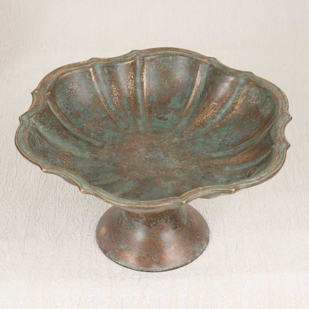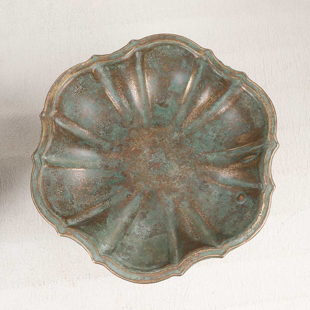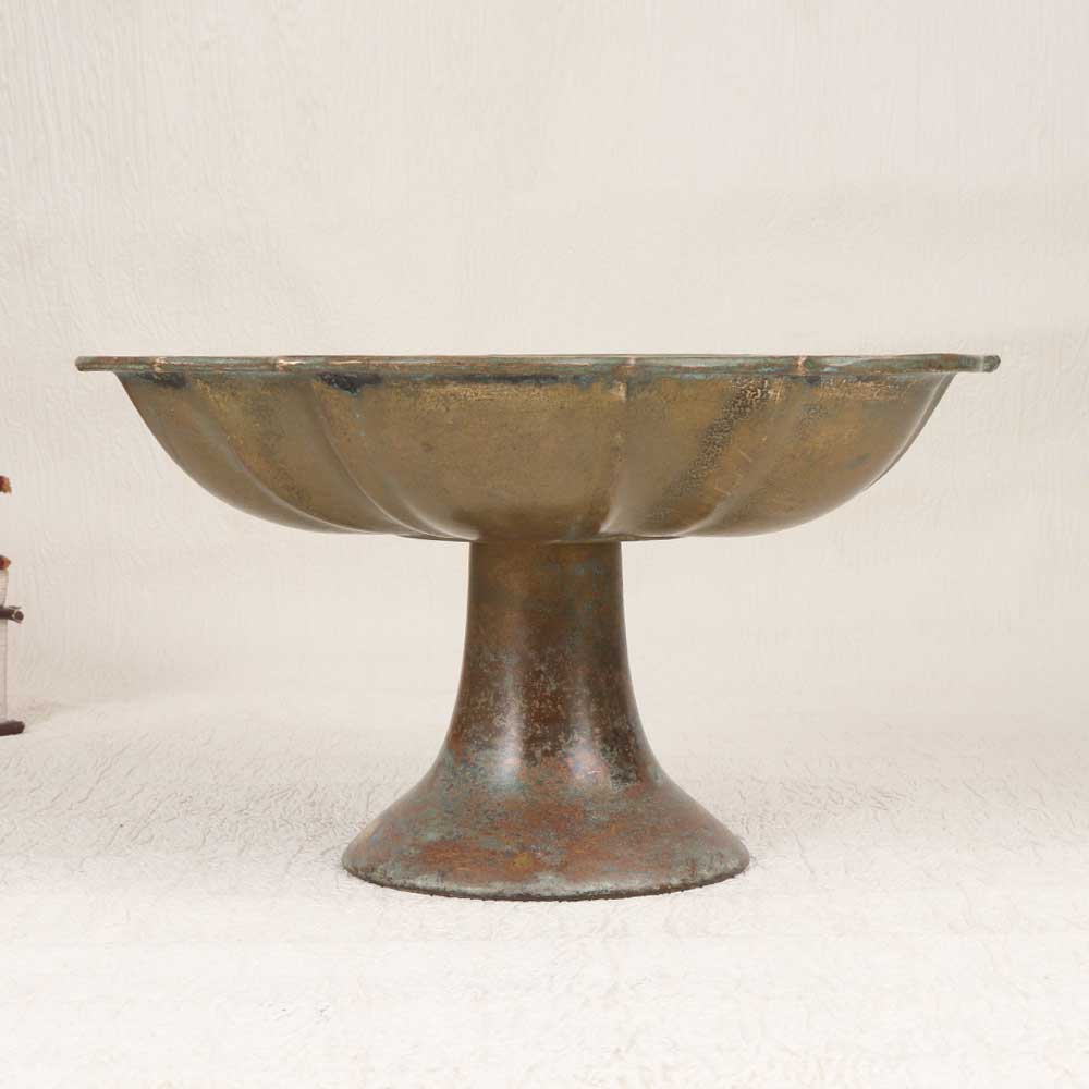 A Vintage Brass Fruit Stand with Stand which is an epitome of timeless elegance and craftsmanship. This stunning piece is adorned with an antique brown finish and is a testament to the artistry of highly skilled artisans in English Art. Handcrafted from high-quality brass, each detail reflects the dedication and precision put into its creation. This versatile fruit stand is not just a functional item but also a captivating decorative piece that effortlessly complements various settings. Its classic design allows it to seamlessly blend into the aesthetics of homes, offices, restaurants, hotels, or cafes, enhancing the ambiance with a touch of vintage charm. Perfect for those with an affinity for collecting vintage treasures, this brass fruit stand is a must-have addition. Placing it amidst your curated collection adds a sense of history and sophistication. Moreover, it serves as an ideal gift for your family, friends or relatives on special, festive, or auspicious occasions, encapsulating both sentiment and enduring beauty.