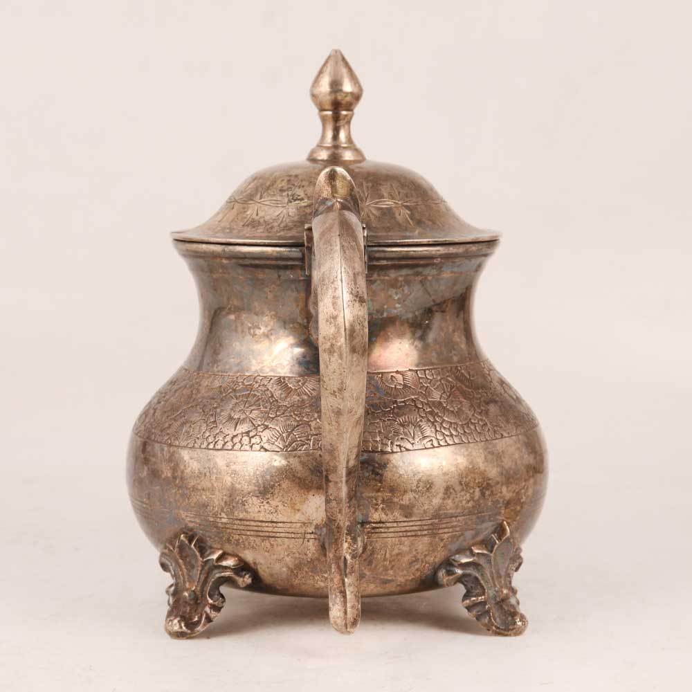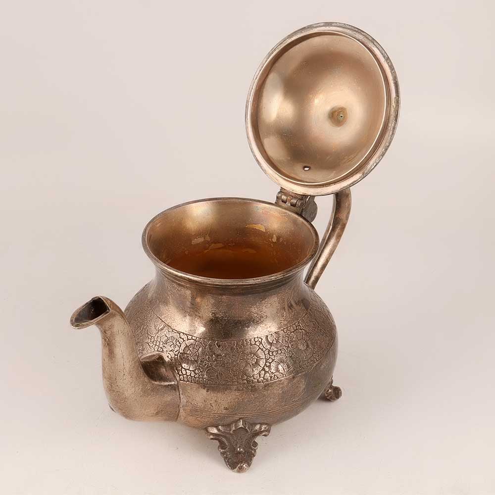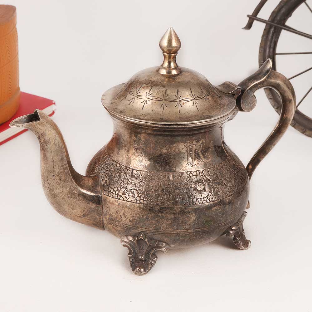 Transport yourself back to a bygone era with this vintage brass kettle. Adorned with intricate, beautiful designs, this remarkable piece is a testament to the skilled craftsmanship of Indian craftsmen. The kettle boasts a classic antique brown finish that adds an aura of nostalgia to any space it graces. Crafted from high-quality brass, this kettle features a sturdy lid and a graceful spout, harking back to the days when it was cherished for its role in serving delightful tea gatherings. However, with age, it has become more suitable as a decorative item rather than for cooking purposes. Supported by four elegant legs, this kettle can sit proudly on any surface, be it at home, in an office, a restaurant, a hotel, or a quaint cafe, elevating the ambiance and transporting visitors to an era of sophistication and elegance. It is the perfect addition to any vintage collection, enhancing your decor or becoming a charming exhibit at exhibitions. Beyond personal use, this exquisite kettle makes for an exceptional gift to your family, friends or relatives on special, festive, or auspicious occasions, symbolizing tradition and a timeless appreciation for the past.