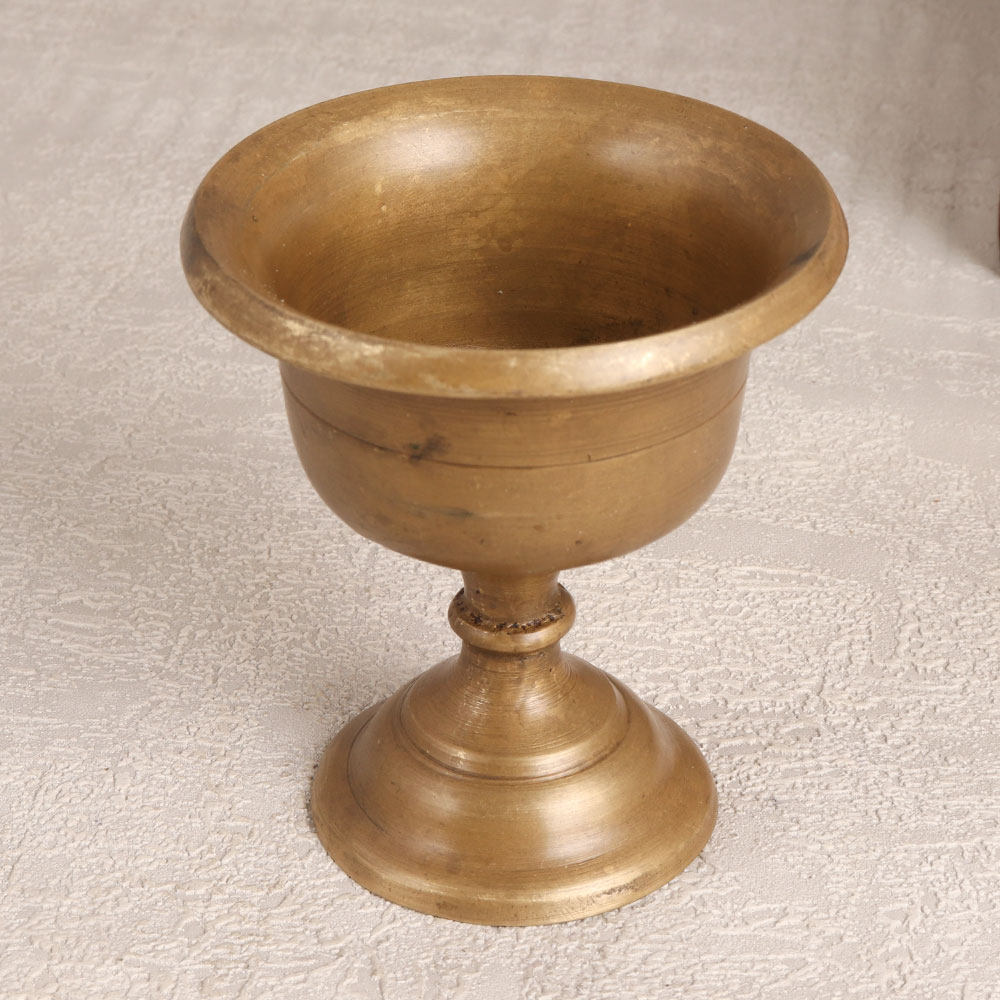 Enhance your prayer space with the timeless charm of our Vintage Brass Kumkum Cup Bowl which is a testament to exquisite craftsmanship rooted in South Indian artistry. Handcrafted by highly skilled Indian artisans, this kumkum cup is fashioned from high-quality brass, offering both durability and an unmistakable antique brown finish. Designed to store the sacred kumkum tilak, it adds a touch of tradition and spirituality to your home, office, restaurant, hotel, or cafe prayer room. With its vintage allure, this piece is not merely a functional item but a captivating addition to any antique collection. Its versatile elegance makes it a thoughtful gift for your family, friends or relatives on special, festive, or auspicious occasions, allowing them to cherish both the aesthetic and spiritual significance of this cultural artefact.