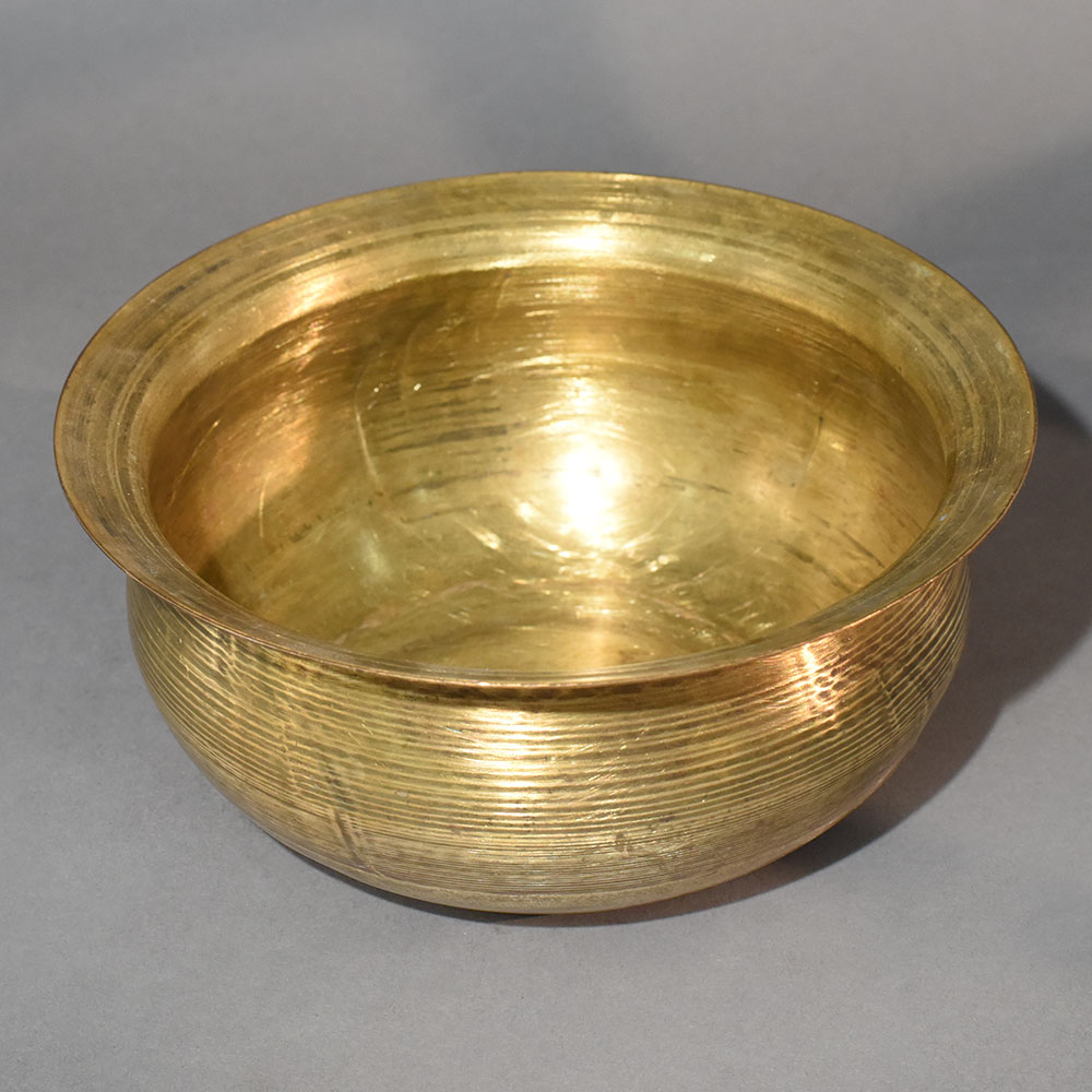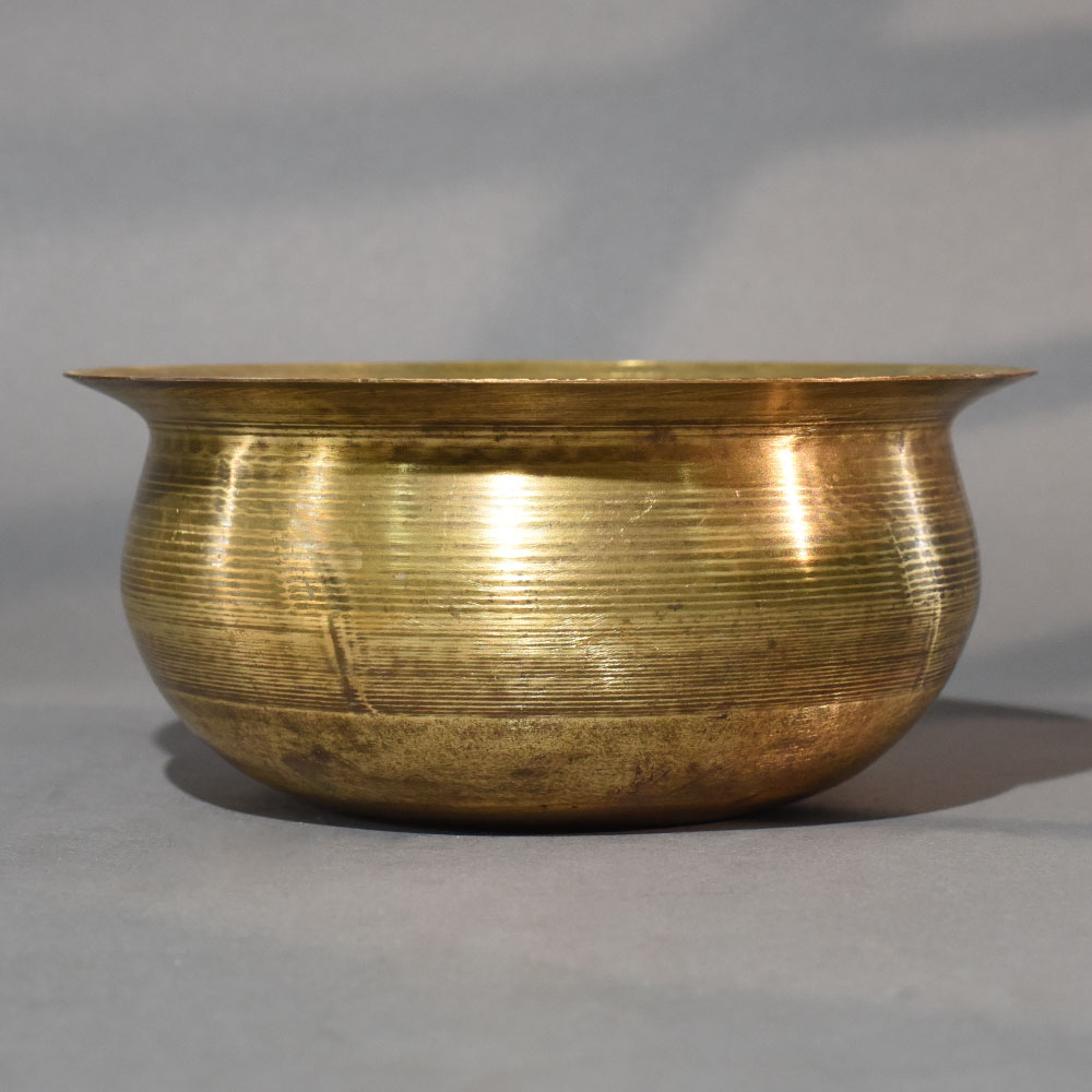 Handcrafted in the Himalayan region, this vintage brass pot planter embodies the charm of objects made to last generations. Its rounded profile and wide opening make it perfect for floral decoration, while the mellow brass finish adds warmth to any interior. Over time, the surface has developed a rich patina that reflects age, use, and environment. These subtle marks enhance its authenticity, turning it into a statement piece rather than a polished reproduction. Whether styled with fresh flowers, festive garlands, or left empty as a sculptural accent, it brings quiet sophistication to the space. This planter pairs beautifully with wooden furniture, stone surfaces, and neutral interiors. It is equally at home in a prayer room, an entryway console, or a modern living room seeking a touch of heritage.