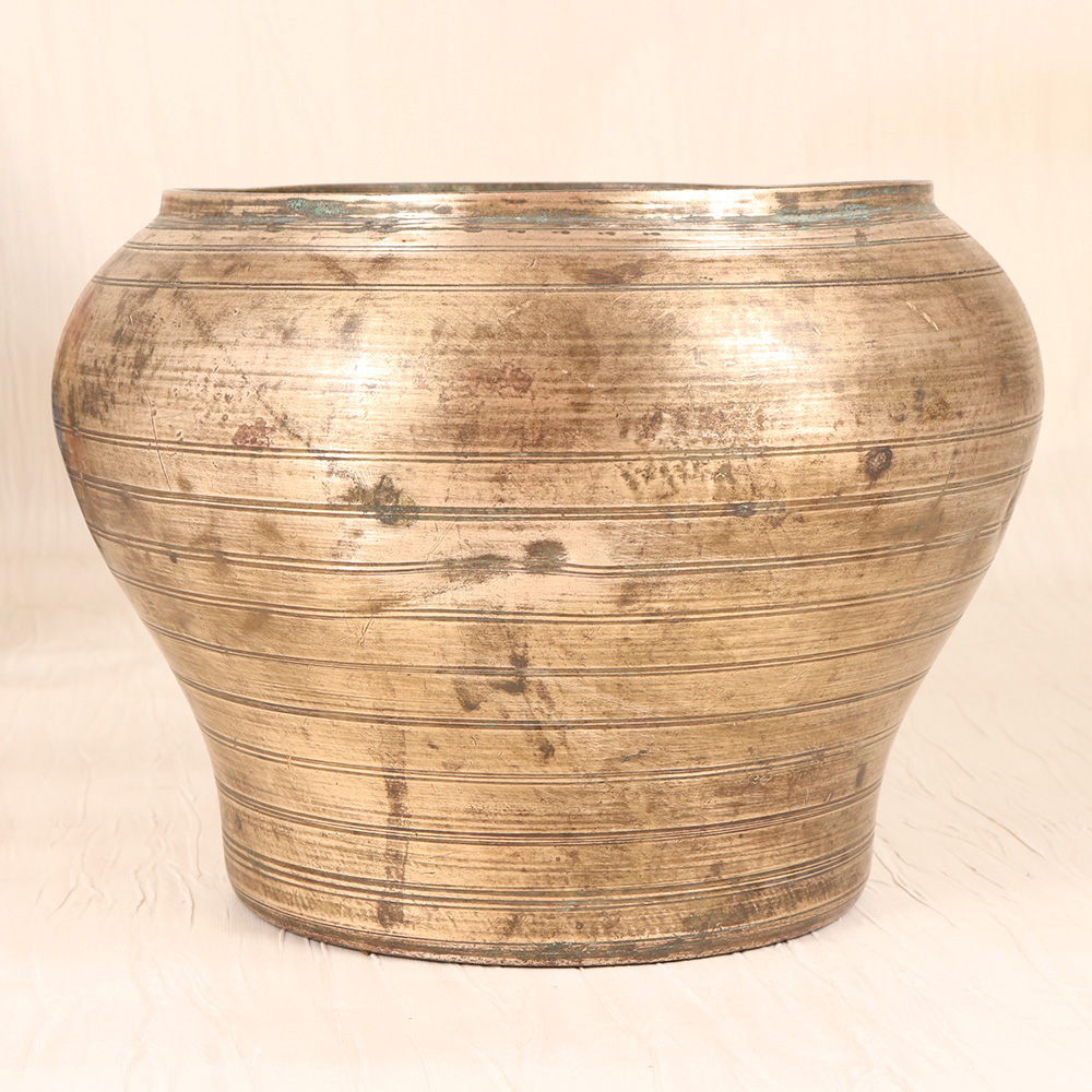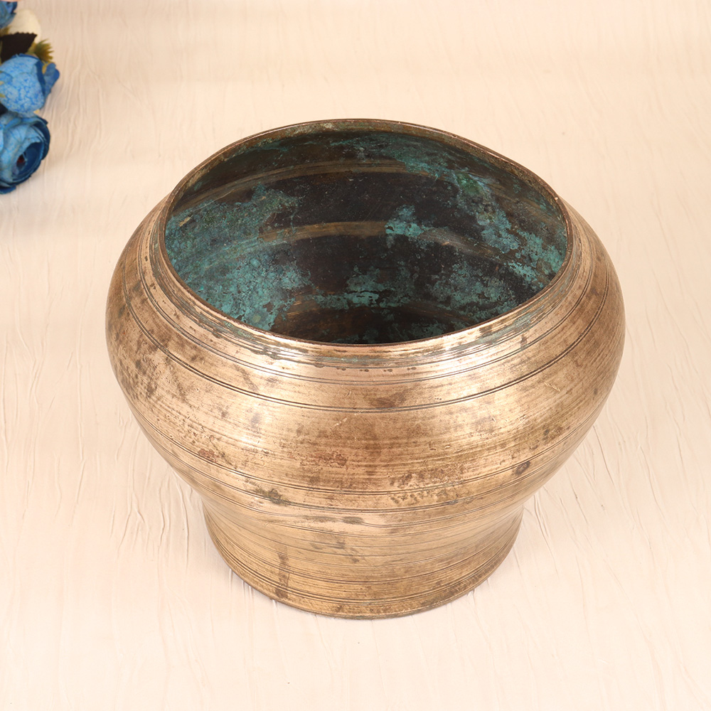 Bring a touch of timeless elegance to your home with this Vintage Brass Pot from Gujarat. Crafted with meticulous attention to detail, this stunning piece effortlessly blends traditional craftsmanship with modern appeal. This vintage brass pot is more than just a container for your plants - it's a work of art that will elevate any space. The rich, warm tones of the brass create a sense of rustic sophistication, while the simple, clean lines lend a contemporary feel. Whether you choose to display it on its own or fill it with lush greenery, this pot is sure to be the centerpiece of any room. Imagine the joy of bringing the vibrant colors and textures of nature into your home, all while enjoying the timeless beauty of this handcrafted piece. The Vintage Brass Pot from Gujarat is the perfect addition for the design-conscious homeowner who appreciates the value of quality craftsmanship and the charm of vintage-inspired decor. Transform your space and make a lasting impression with this stunning statement piece.