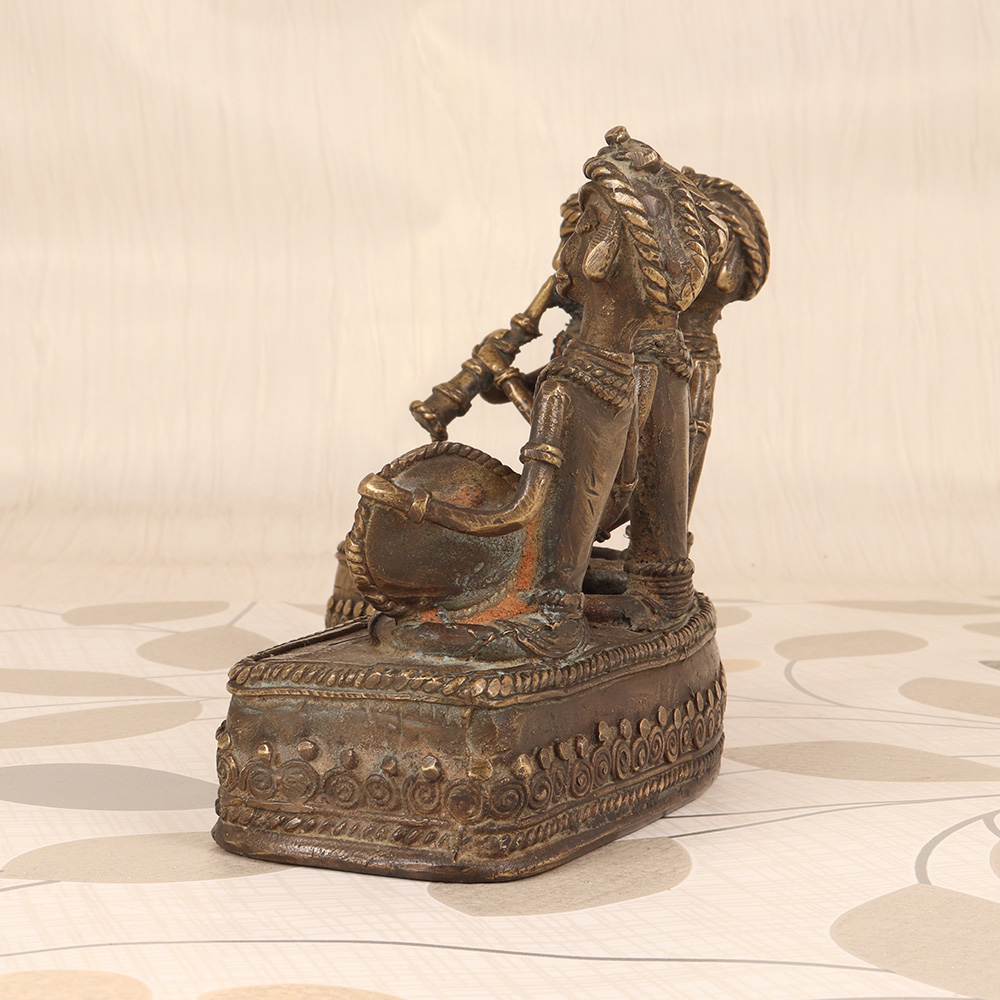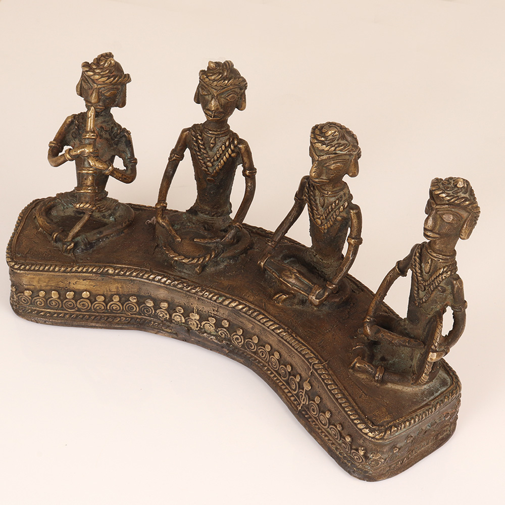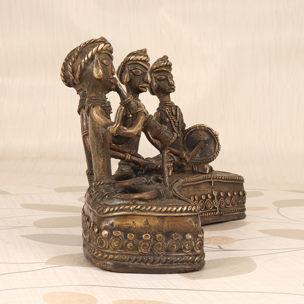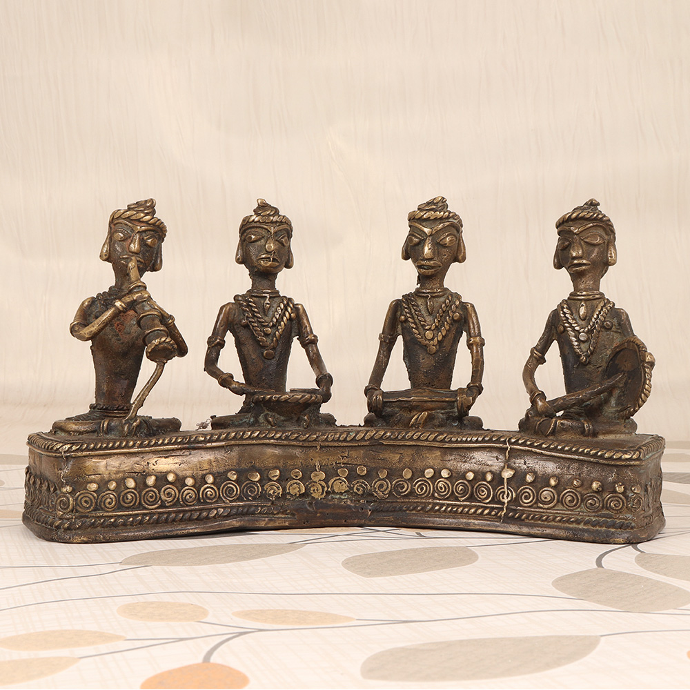 Discover the captivating Vintage Brass Tribal Art Four Figure - a striking display of Bastar Art that brings the vibrant pulse of traditional music to life. This exquisite piece features four intricately sculpted figures, each masterfully crafted to depict a tribal musician playing a distinct instrument, from the soulful drum to the enchanting flute. Invite the rhythmic heartbeat of tribal music into your living space with this remarkable Vintage Brass Tribal Art Four Figure. Crafted with meticulous attention to detail, this piece celebrates the extraordinary talent and time-honored traditions of Bastar's artisans. Display it proudly as a testament to the enduring power of authentic, handmade craftsmanship. Whether you're a connoisseur of world art, a passionate collector, or simply seeking to infuse your home with a touch of global inspiration, this exquisite tribal figure set will elevate your space and captivate all who behold it. Bring the rhythmic artistry of tribal music into your life and experience the transformative power of this remarkable piece.