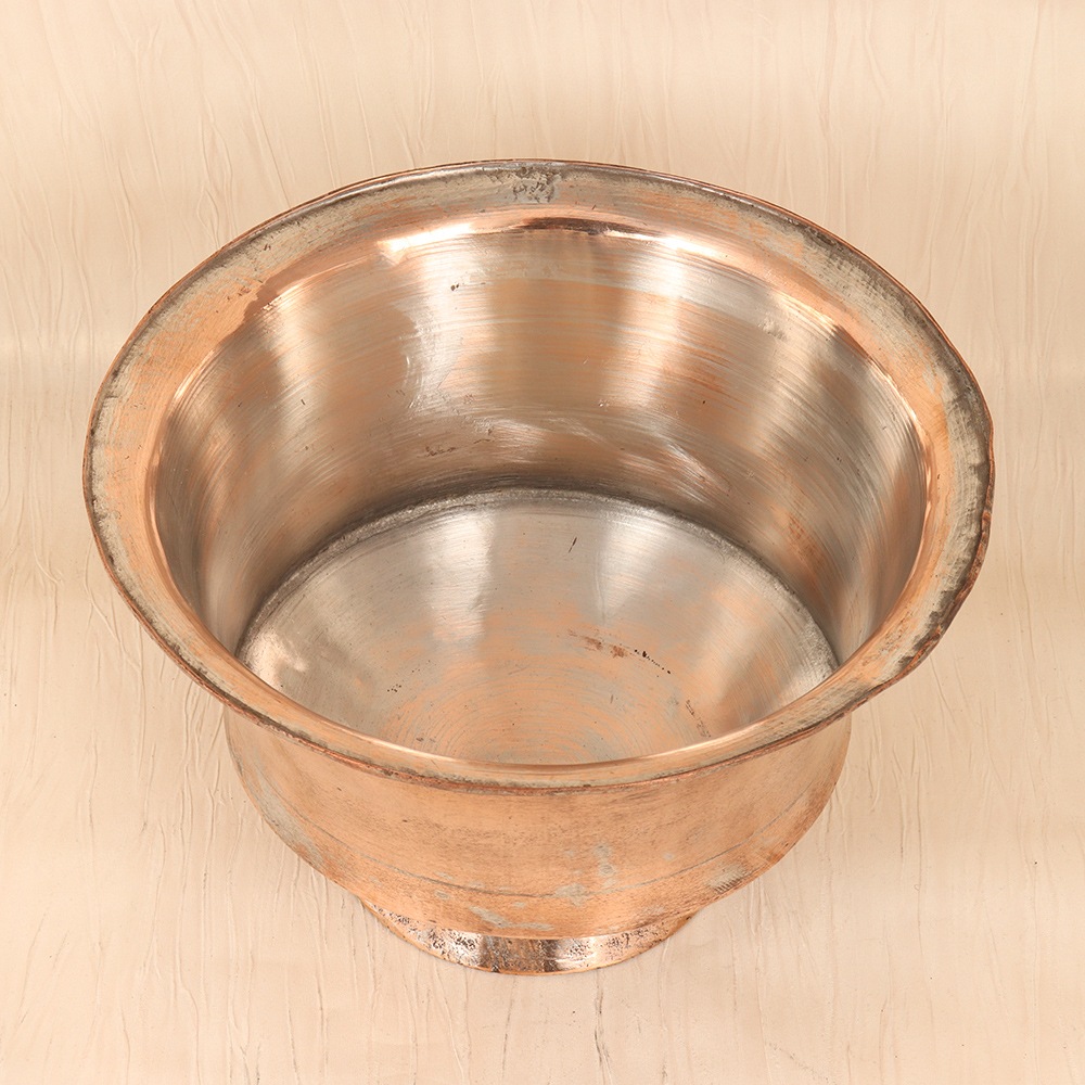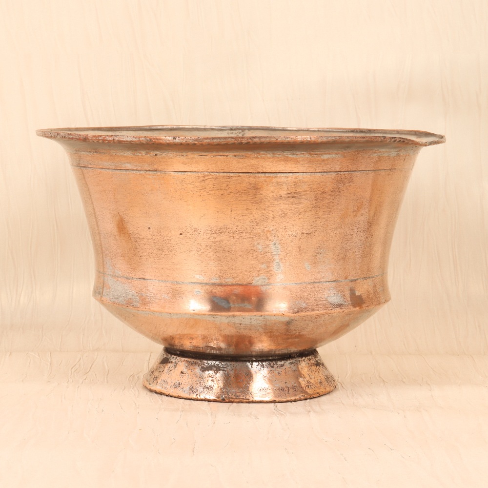 Infuse your space with the captivating beauty of Islamic art with this stunning Vintage Copper Fruit Bowl. Crafted with meticulous attention to detail, this heirloom-quality centerpiece blends functional elegance with rich cultural heritage. More than just a practical storage solution, this copper bowl is a work of art that will elevate the style of any space. The warm, gleaming copper radiates a sense of luxury, while the simple, clean-lined silhouette and muted brown tones create a sophisticated, understated look inspired by the refined aesthetics of Islamic design. Imagine this striking bowl gracing your kitchen counter, dining table or entryway, filled with an array of vibrant fruits that showcase its beauty. Or use it to corral your everyday items, transforming the mundane into the magnificent. Whichever way you choose to display it, this exquisite copper bowl is sure to be the focal point of any room. Invest in a piece that combines form and function, elevating the everyday into the extraordinary. Bring the timeless elegance of Islamic art into your home with this breathtaking Vintage Copper Fruit Bowl.