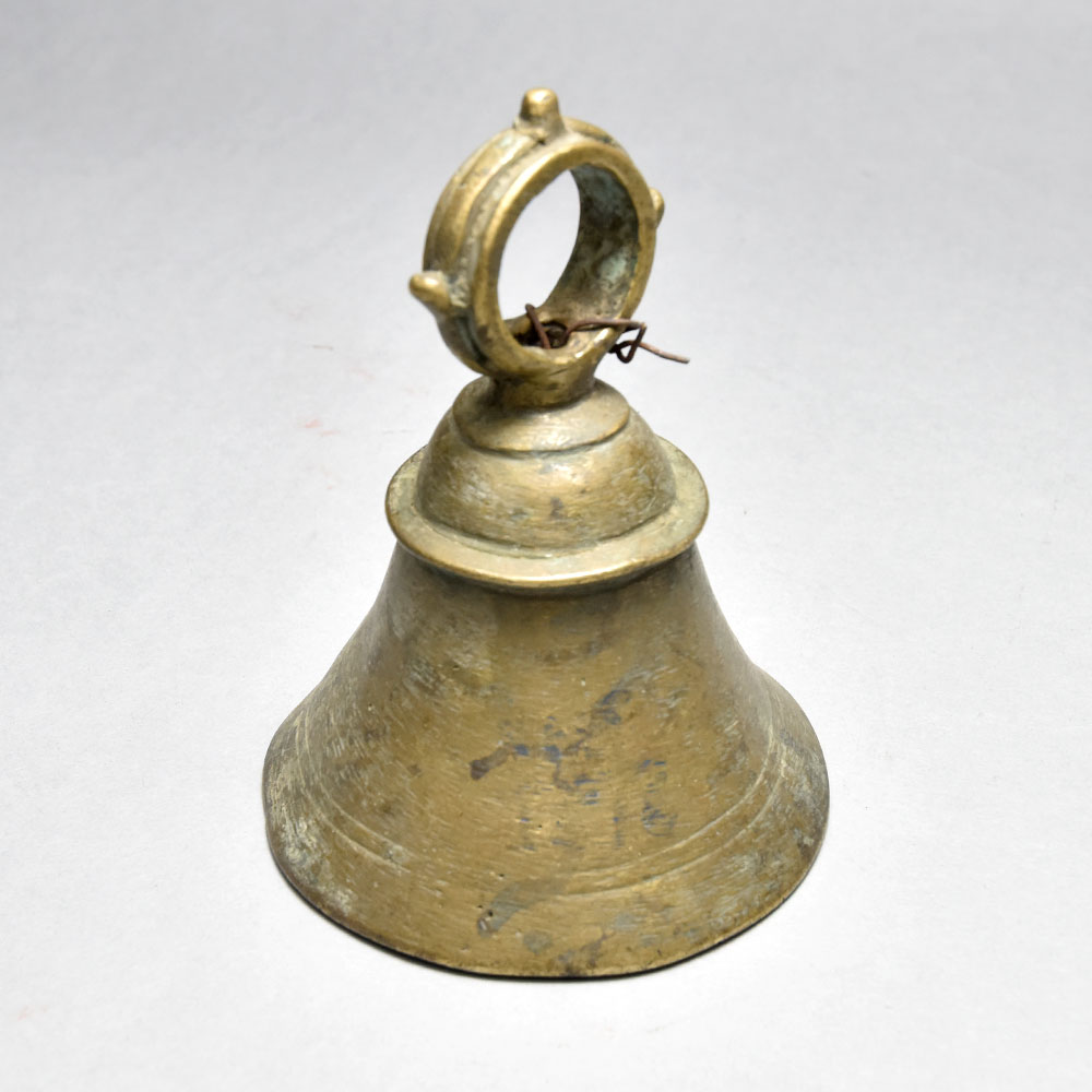 Elevate your meditation practice and create a tranquil oasis in your home with this stunning vintage Bell Metal temple bell. Crafted with meticulous attention to detail in the spiritual heart of India, this bell's rich, resonant tone will transport you to a realm of profound peace and inner calm. Imagine the soothing vibrations of this temple bell washing over you as you sit in quiet reflection. Its hypnotic chime will quiet the mind, allowing you to sink into a deeper state of mindfulness and connection. Whether you're an experienced meditator or simply seeking more tranquility in your daily life, this Bell Metal bell is a must-have tool for your personal growth and spiritual journey. This vintage treasure is the perfect addition to any prayer room, yoga studio, or home sanctuary. Its elegant silhouette and gleaming Bell Metal finish will elevate your space, creating an atmosphere of reverence and serenity. Bring the timeless wisdom of the East into your life and let the temple bell be your guide to greater peace of mind.