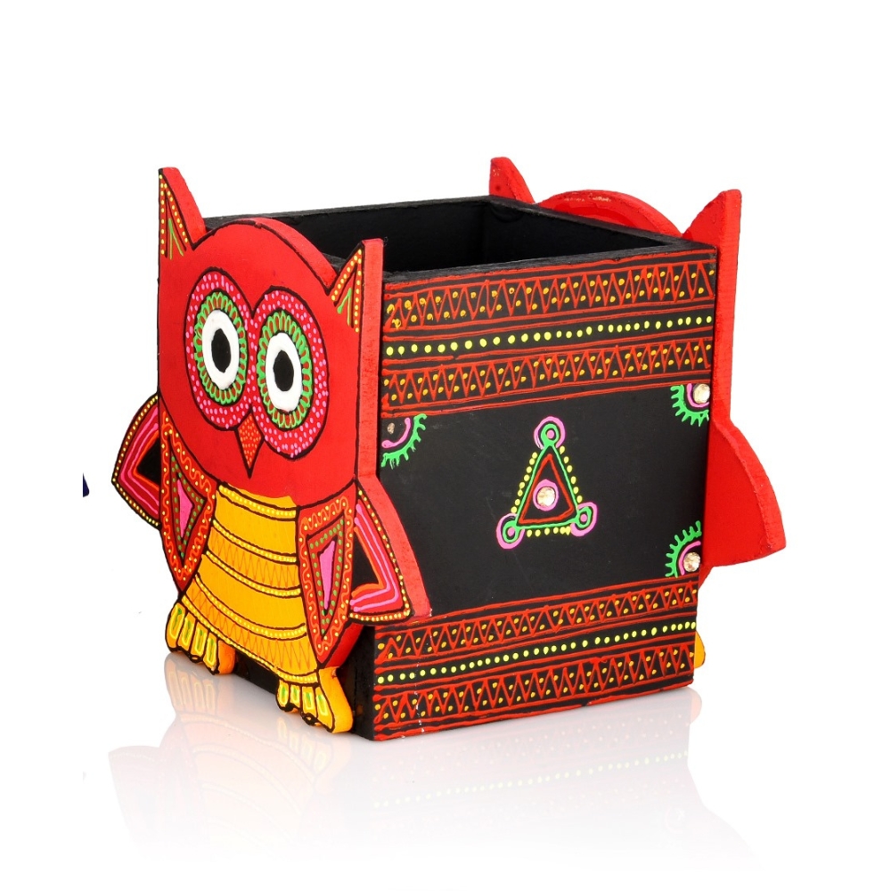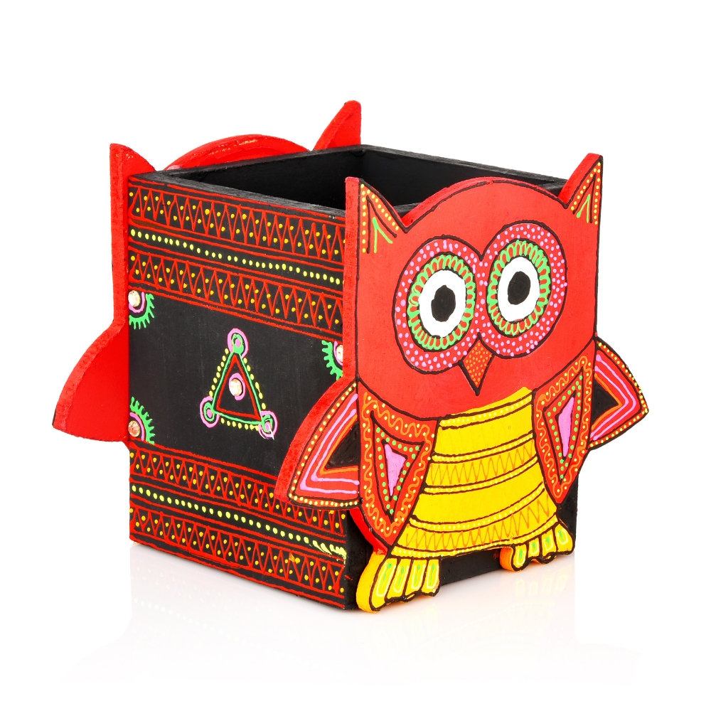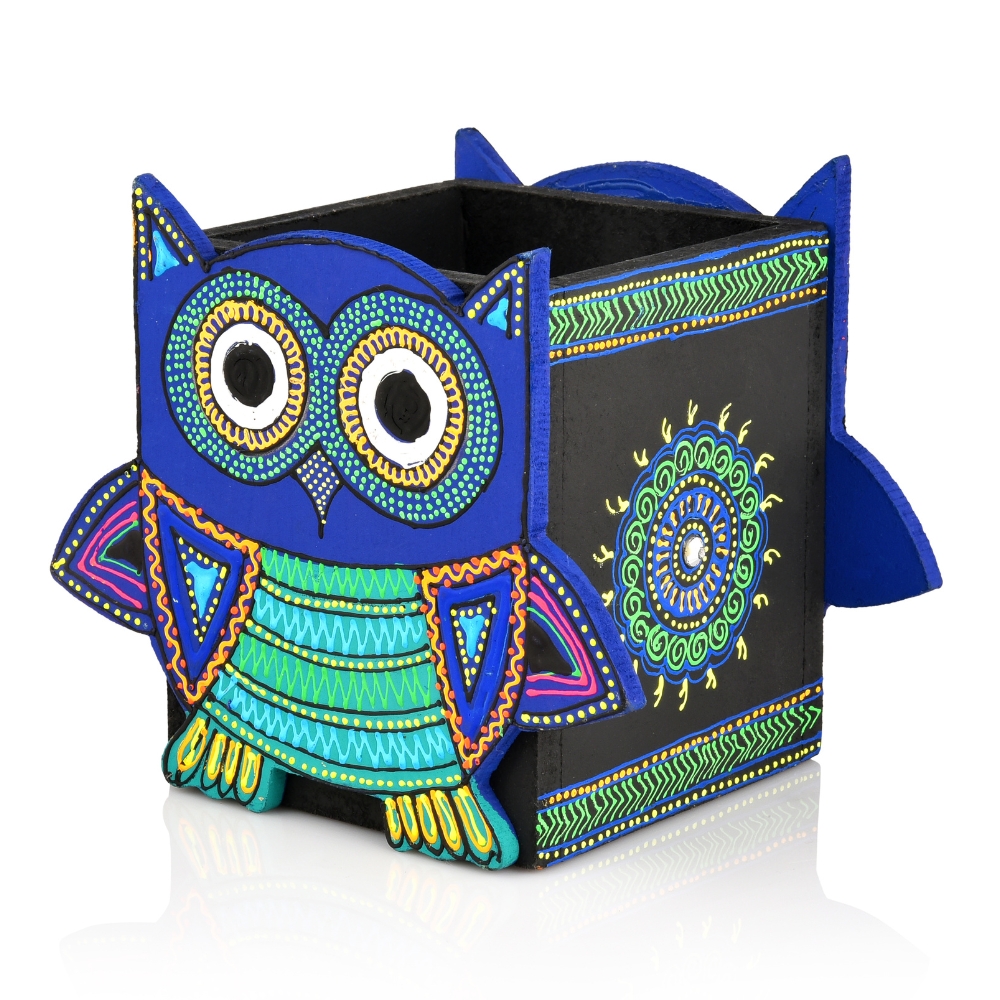 • Handcrafted Wooden Owl Motif Pen Stand