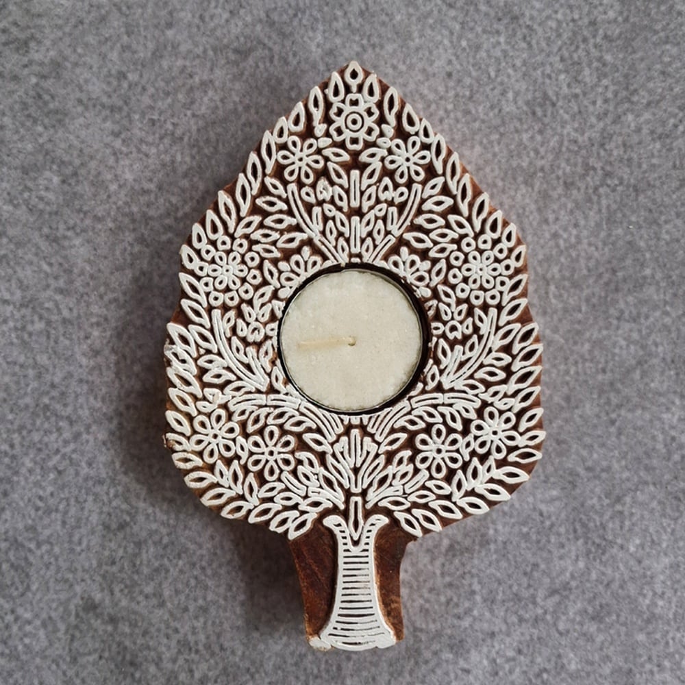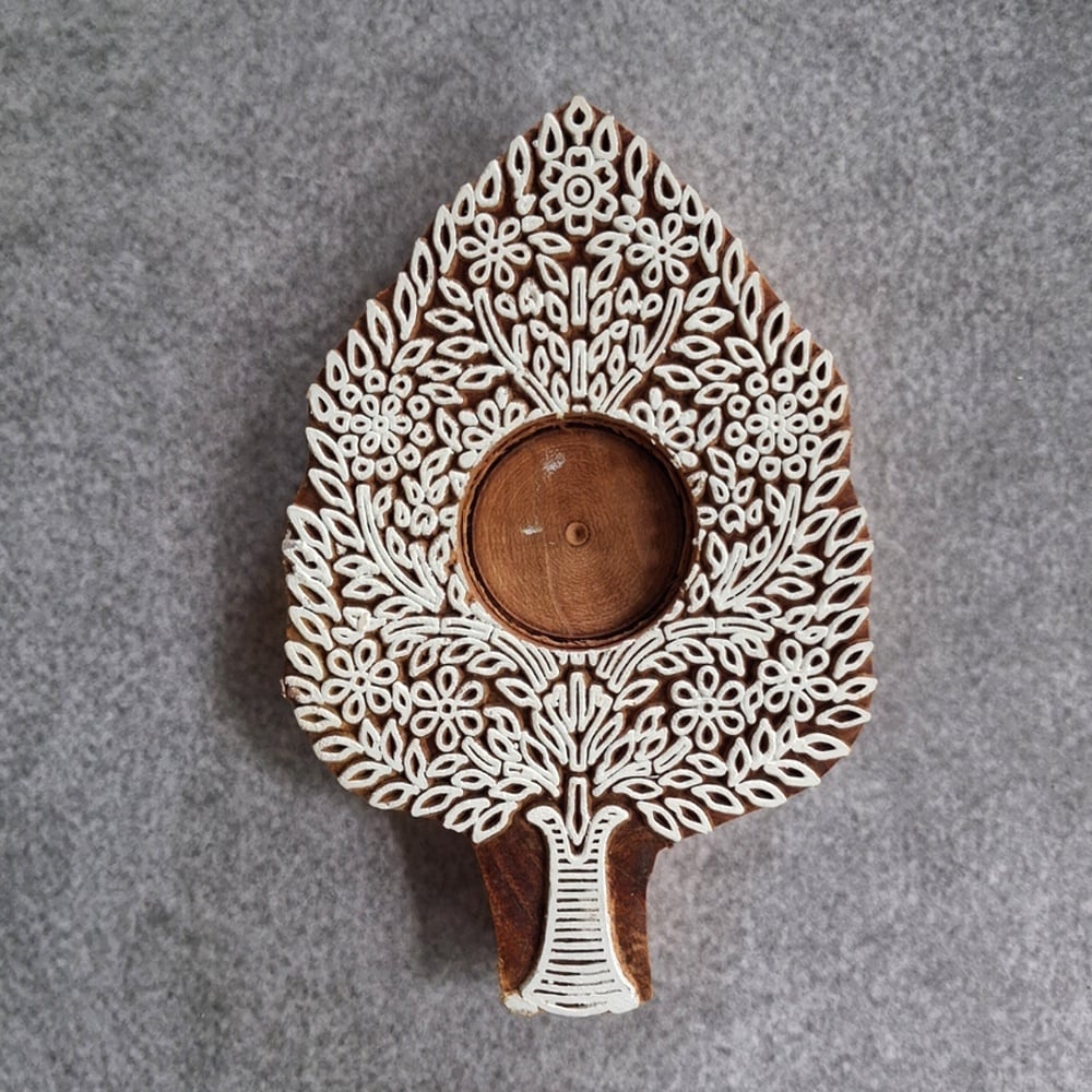 This beautiful handcrafted wooden tree T light decor piece features an intricately carved tree motif symbolizing growth and harmony. Designed to hold a T light candle at its center, it creates a calming glow while enhancing your decor with artistic craftsmanship.