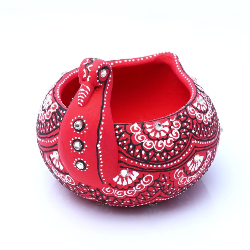 Celebrate Diwali and festive moments with the charm of this Handicraft Terracotta Modern Swan Diya in Red. Expertly shaped like a graceful swan, this diya doubles as a tealight holder, blending traditional terracotta artistry with a vibrant red finish. Its bold yet elegant look makes it a centerpiece for puja rooms, living spaces, and special occasions.