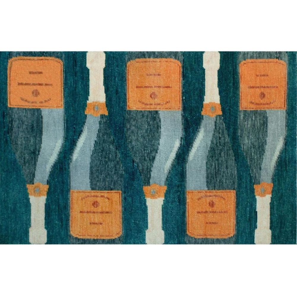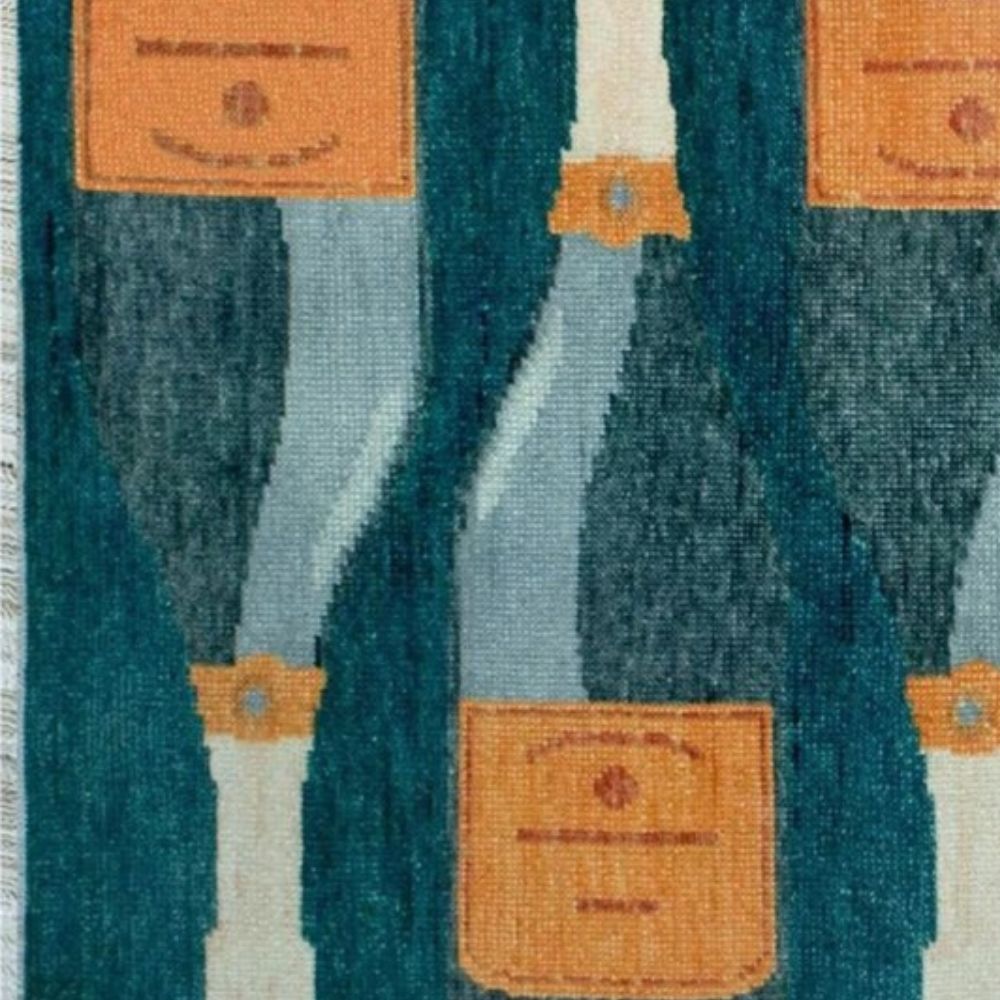 Champagne Pop Art Hand-Knotted Wool Rug | Bottle Design Statement Rug Add a bold and artistic twist to your interior with this Champagne Bottle Design Rug a hand-knotted masterpiece that brings playful sophistication to your floor. Featuring a repeating champagne bottle motif in striking teal, burnt orange, and soft ivory, this rug is ideal for creative living spaces, lounges, bars, or any area where you want your decor to make a statement. These rugs are among the most durable and prestigious rug types available. Wool Options Available Fine Blended Wool A mix of 40% New Zealand wool and 60% Indian wool for durability and affordability. Slight shedding is natural in early use. New Zealand Wool Imported, longer fiber wool that is soft, bright, and resistant to shedding. All wool rugs shed slightly at first but normalize after a few weeks of use. Customization Available We can create this rug in any size. Custom color combinations are also available upon request. A Statement of Craft and Creativity Each rug is made with care, creativity, and dedication in rural India. This is.