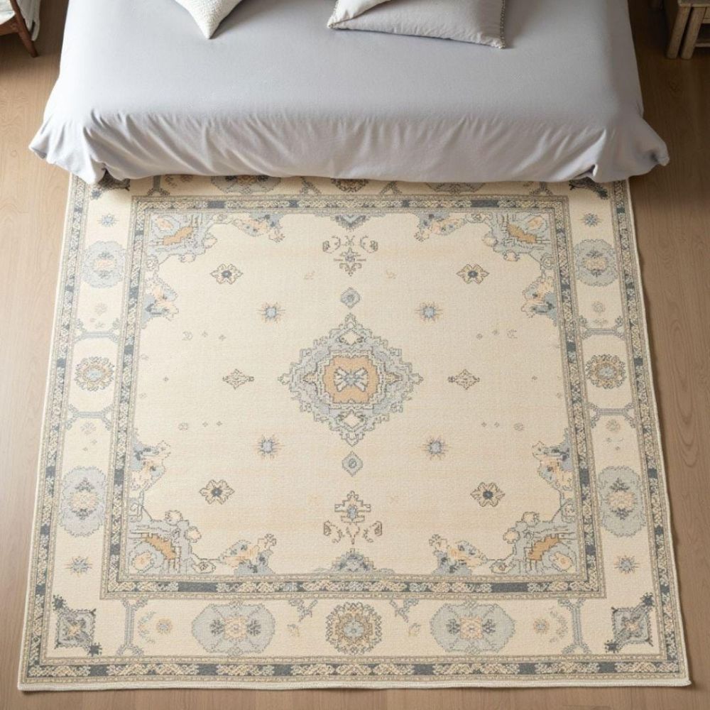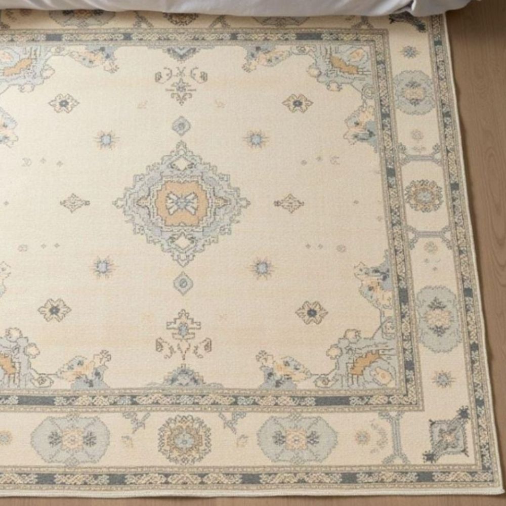 - The palette blends blue, ivory tones for versatile styling.