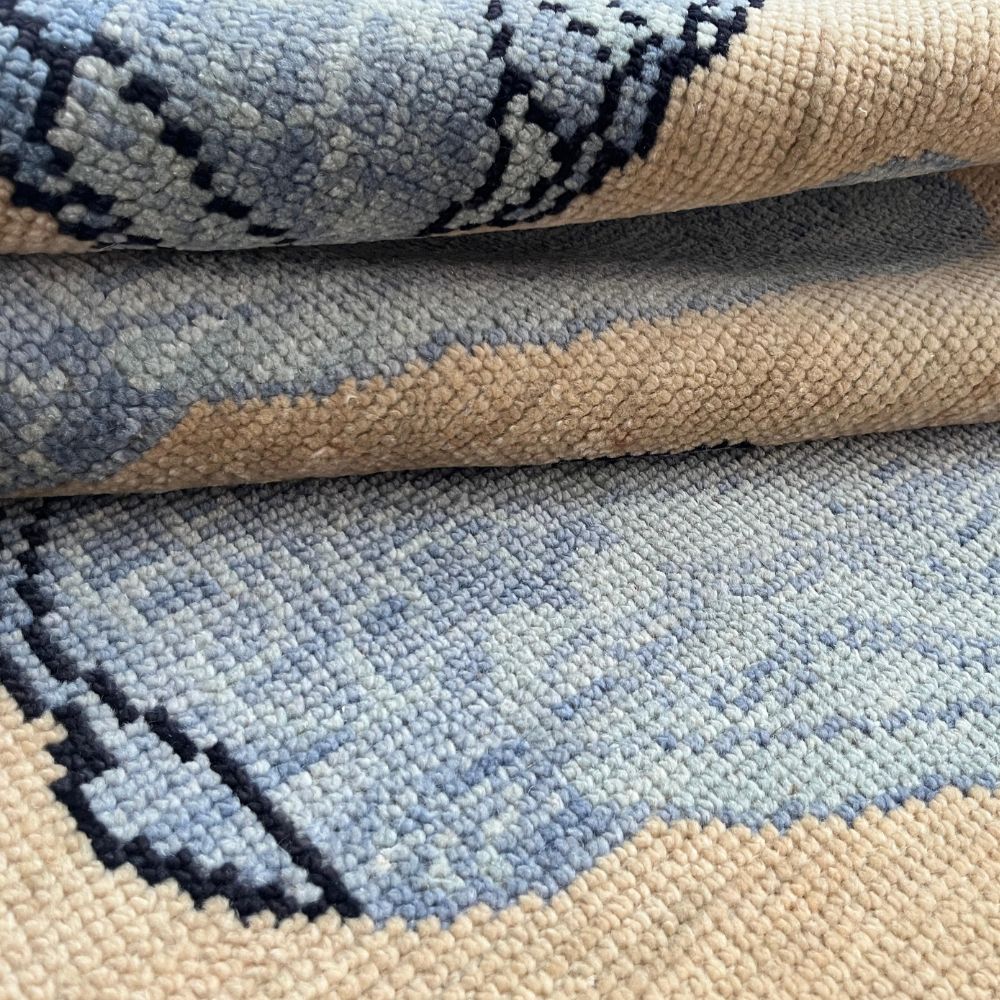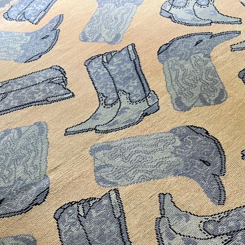 Add a playful Western twist to your space with the Western Rodeo Boot Rug a hand-knotted wool rug featuring an all-over pattern of cowboy boots in shades of denim blue and sky. This bold and charming rug celebrates Americana with a stylish, artistic take on cowboy culture. Each boot is uniquely illustrated in varying shades and styles, laid out on a warm neutral backdrop that balances the design's liveliness. Whether youre going for a quirky ranch look, a vintage Western vibe, or just want a standout statement piece, this rug brings fun energy and conversation-starting charm. Hand-Knotted with Premium Wool Expertly crafted by skilled artisans, the rug is hand-tufted using high-quality wool, offering natural softness, durability, and resilience. Wools insulating properties and resistance to dirt and crushing make it an ideal choice for high-traffic areas without sacrificing comfort.