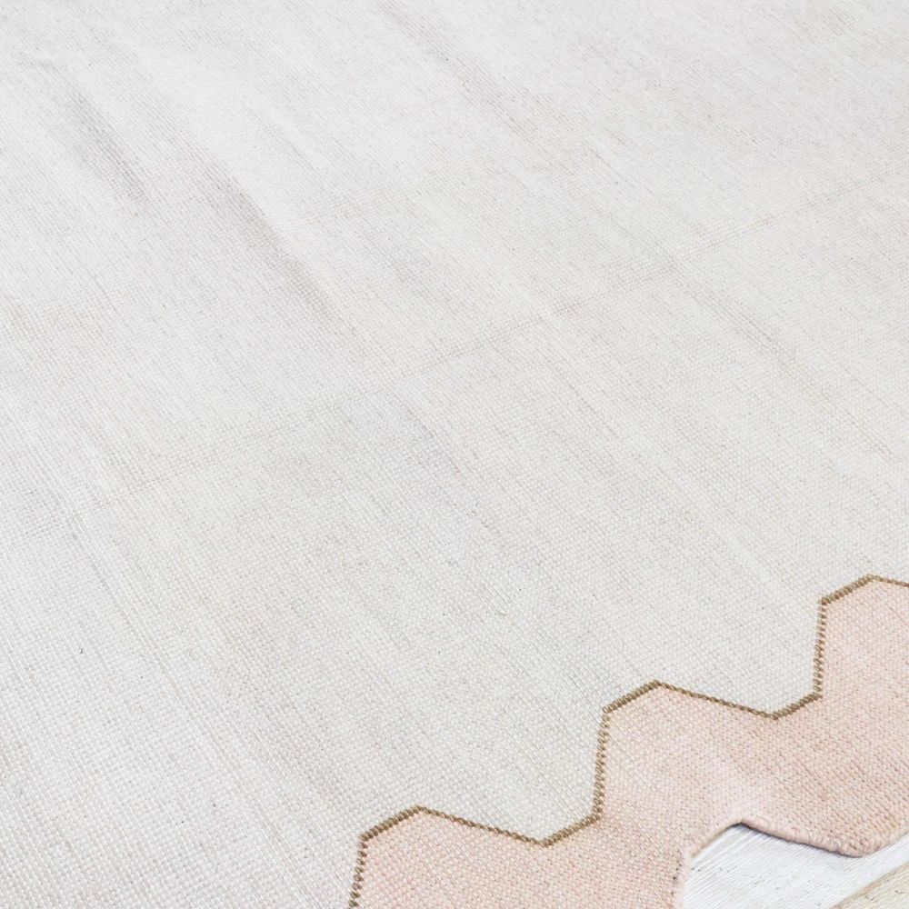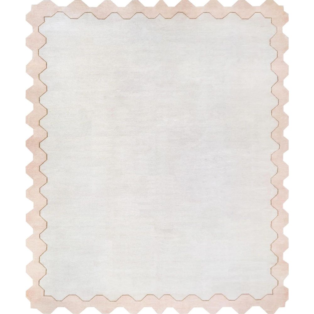 Embrace minimalism with artistic edge. The Zigzag Serenity Rug by AnsariRugDesign is a modern interpretation of hand-knotted tradition. Color Story: Soft ivory forms the tranquil base of the rug, surrounded by a muted blush-pink zigzag border. The subtle contrast brings depth and definition without overwhelming your space, making it ideal for interiors that favor light, air, and calm. Design & Pattern: This rug features a clean central fieldfree from ornate motifsframed by a rhythmic, geometric zigzag pattern. The hand-drawn outline adds warmth and personality, perfect for both minimalist interiors and eclectic decor schemes seeking grounding elements. These subtle differences are not defects, but reflections of the artistry and handwoven process. Colors may appear differently on various devices and screens. We do our best to represent the true rug color in our photos. As it Appears Pack of One Piece.