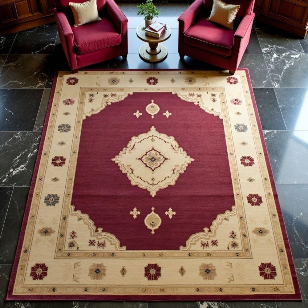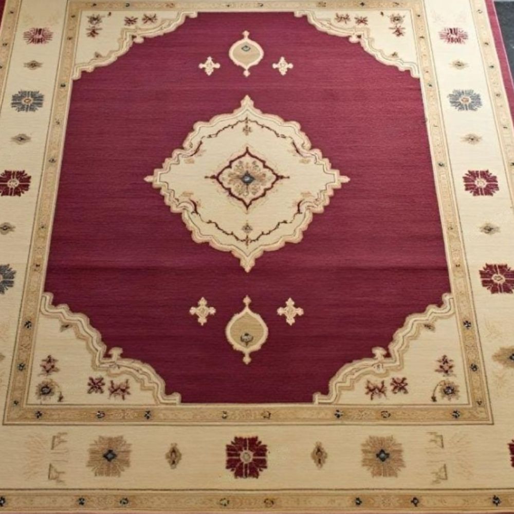 Authentic Hand-Knotted Rug Burgundy & Ivory Elegance Bring timeless beauty into your home with this luxurious hand-knotted wool rug, crafted by skilled artisans using age-old weaving traditions. The deep burgundy red field paired with an ivory geometric medallion and border creates a striking balance of richness and sophistication, perfect for both modern and traditional interiors. Key Features: Hand-Knotted Excellence: Each knot is tied by hand, ensuring durability, precision, and uniqueness. Premium Material: Made from 100% natural wool, offering softness, warmth, and long-lasting quality. Traditional Design: The bold medallion center with floral and geometric details reflects oriental heritage. Versatile Use: Ideal for living rooms, dining areas, bedrooms, or offices. One-of-a-Kind: No two rugs are exactly alike, making your piece truly special. Available Sizes: (Custom sizes can be made on request please message us for details.) Why Choose a Hand-Knotted Rug? Hand-knotted rugs are known as the finest in the world. Unlike machine-made rugs, they age beautifully, becoming softer and more valuable with time. Care Instructions: Vacuum regularly with care. Professional cleaning recommended for longevity. As it Appears Pack of One Piece.