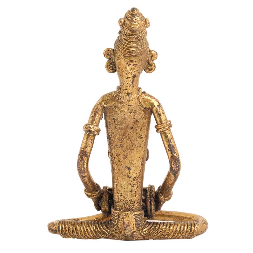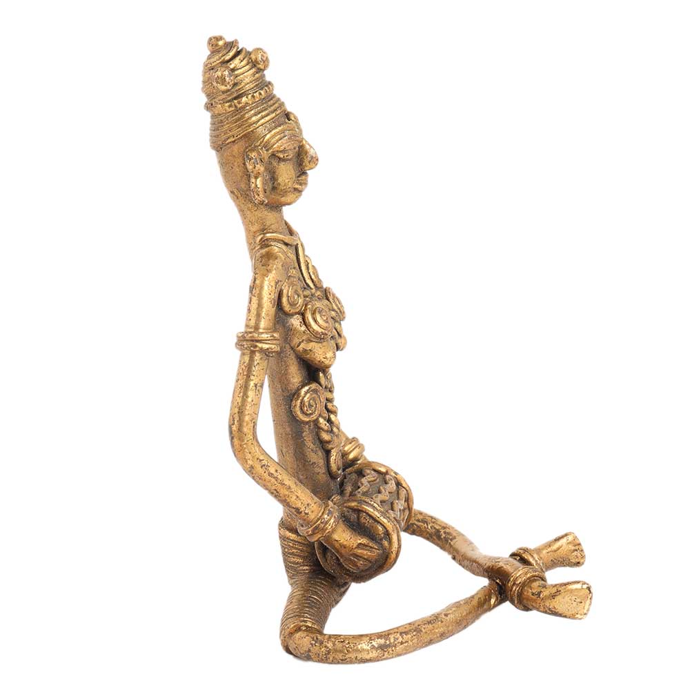This handmade dhokra fictional character of a tribal musician is ideal as a side table, showpiece for the study table or office desk, pooja room and a gift for loved ones and housewarming gift.