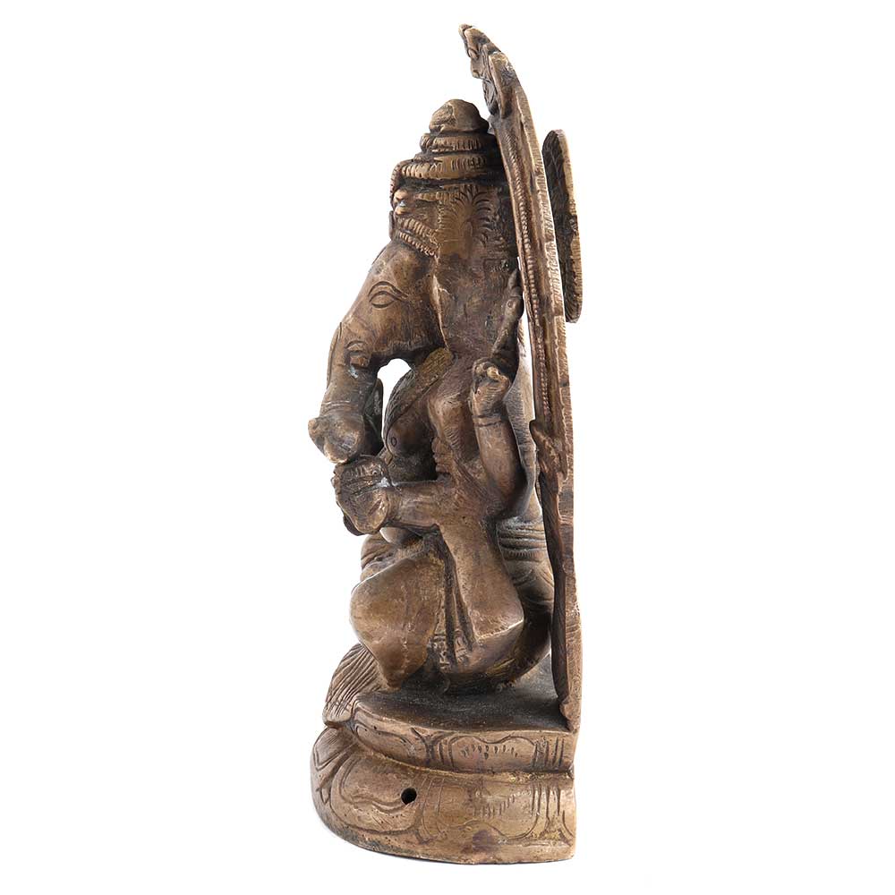 This brass ganesha statue has a beautifully carved arch behind the idol and a beautiful lotus throne. This statue will be a great gift option for housewarming parties, birthday parties, weddings and festivals.
