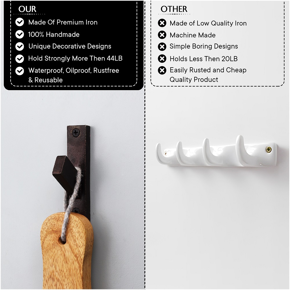 1. Built for Heavy Use: 2. Vintage Industrial Aesthetic: 3. Made to Last: 4. Naturally Antimicrobial: Quick Tip: Use multiple hooks in a row to create a visually balanced, highly functional storage wall in entryways or utility areas.
