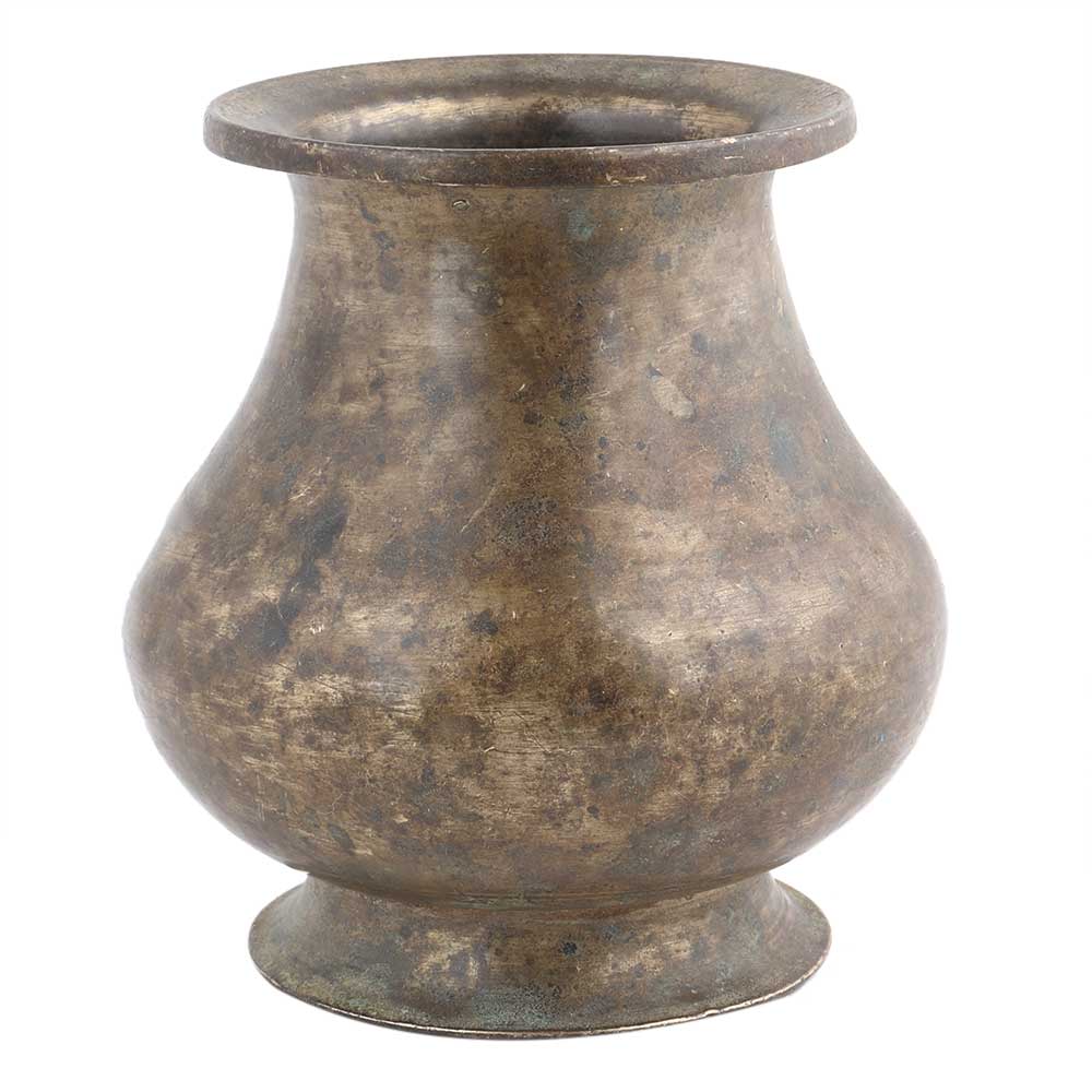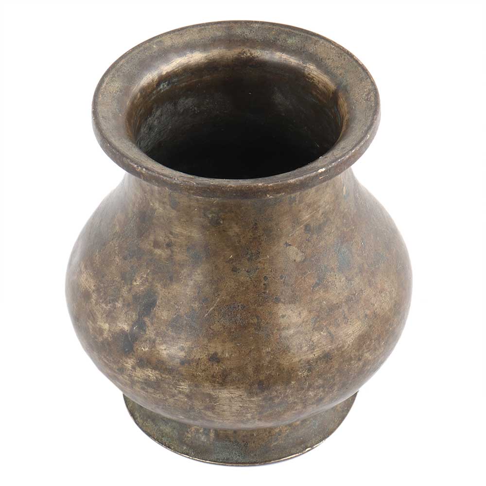 This south Indian pot made in solid brass has a bulbous body and a flared mouth. It is an ideal home and office decoration, corporate gift, as a vase for your special friends and family members.