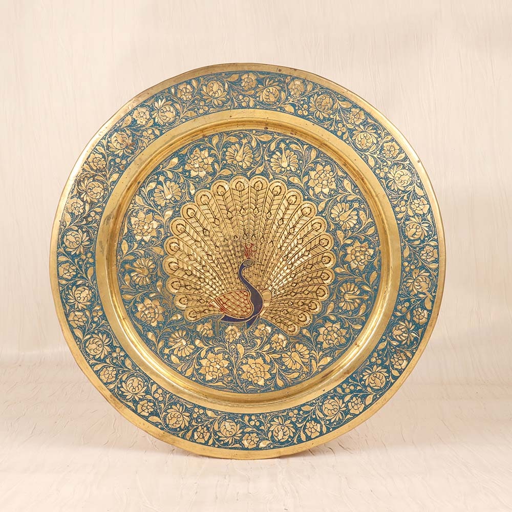 Prepare to be captivated by the stunning beauty of this vintage brass hanging plate, adorned with a mesmerizing peacock engraving and vibrant blue enamel work. This exceptional piece is a true testament to the art of craftsmanship, destined to become the centerpiece of your home decor. Imagine this vintage brass hanging plate gracing the walls of your living room, hallway, or even your outdoor patio, instantly transforming the space into a serene oasis of refined sophistication. Its captivating beauty will not only command attention but also inspire a sense of wonder and appreciation for the artistry of the past. Whether you're a collector of vintage decor or simply seeking to infuse your home with a touch of timeless elegance, this vintage brass hanging plate is the perfect addition to your curated collection. Embrace the exquisite craftsmanship of this remarkable piece and elevate your living space to new heights of beauty and charm.