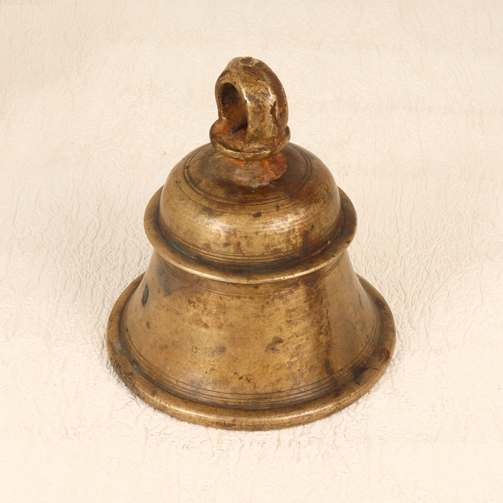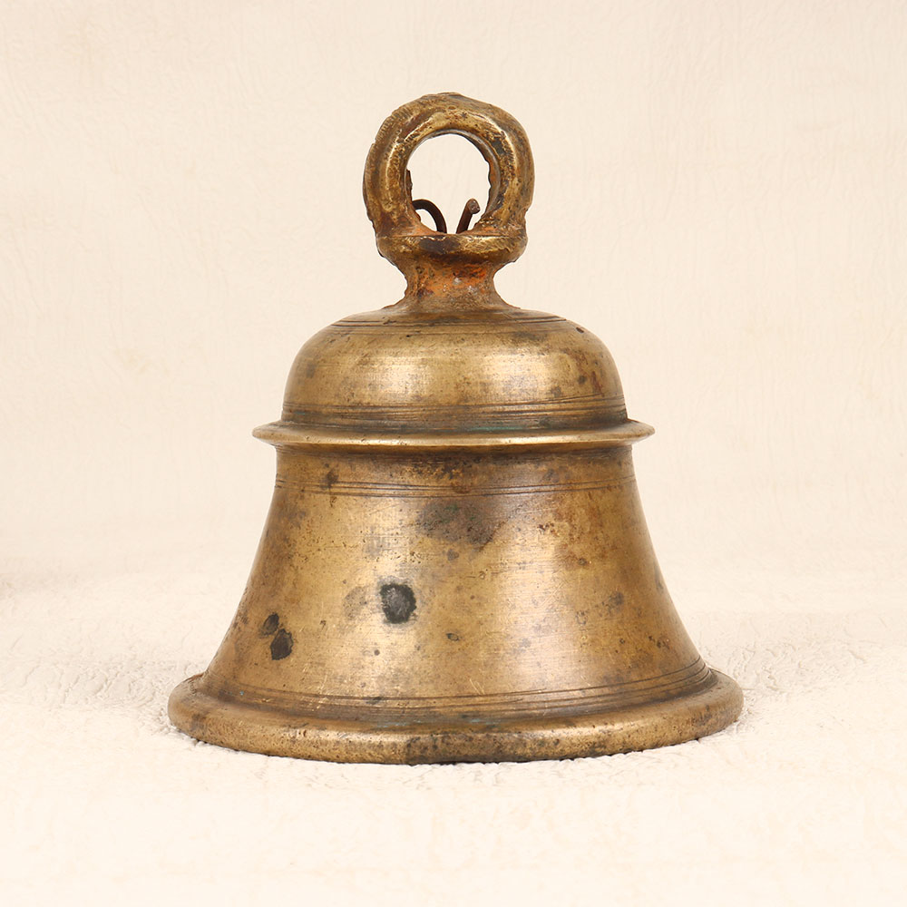 This vintage bell metal temple bell is a true embodiment of cultural heritage. Handcrafted by professional artisans from Central India, this bell resonates with the rich tradition of bell metal craftsmanship. The exquisite antique brown finish adds an aura of antiquity, while the high-quality bell metal ensures durability and an authentic resonance. Featuring a convenient loop for hanging, this temple bell is versatile, making it a perfect addition to your prayer room, temple, or any sacred space. Beyond religious use, its charm extends to home, office, restaurant, hotel, or cafe decor. Elevate your surroundings with its historical allure or gift it to your family, friends or relatives on special, festive, or auspicious occasions. This bell not only serves as a spiritual symbol but also becomes a cherished part of any vintage collection.