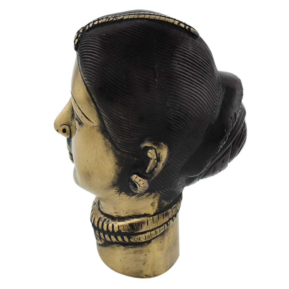 Handcrafted Gangaur or gauri or parvati head statue is made entirely of high-quality brass. It is ideal for home decoration and temples. It works well as a showpiece and can be displayed on a showcase or on a centre table. It comes with a lovely black polish.