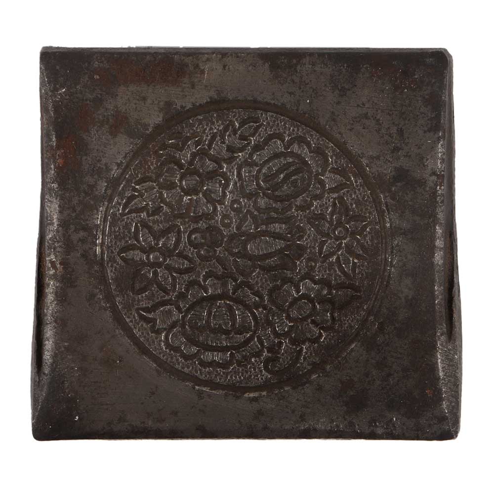 This cube-shaped black brass metal paperweight or art object features a gorgeous floral design on one side and is ideal for retaining papers on your desk or as shelf decor. For exceptional friends on special occasions.